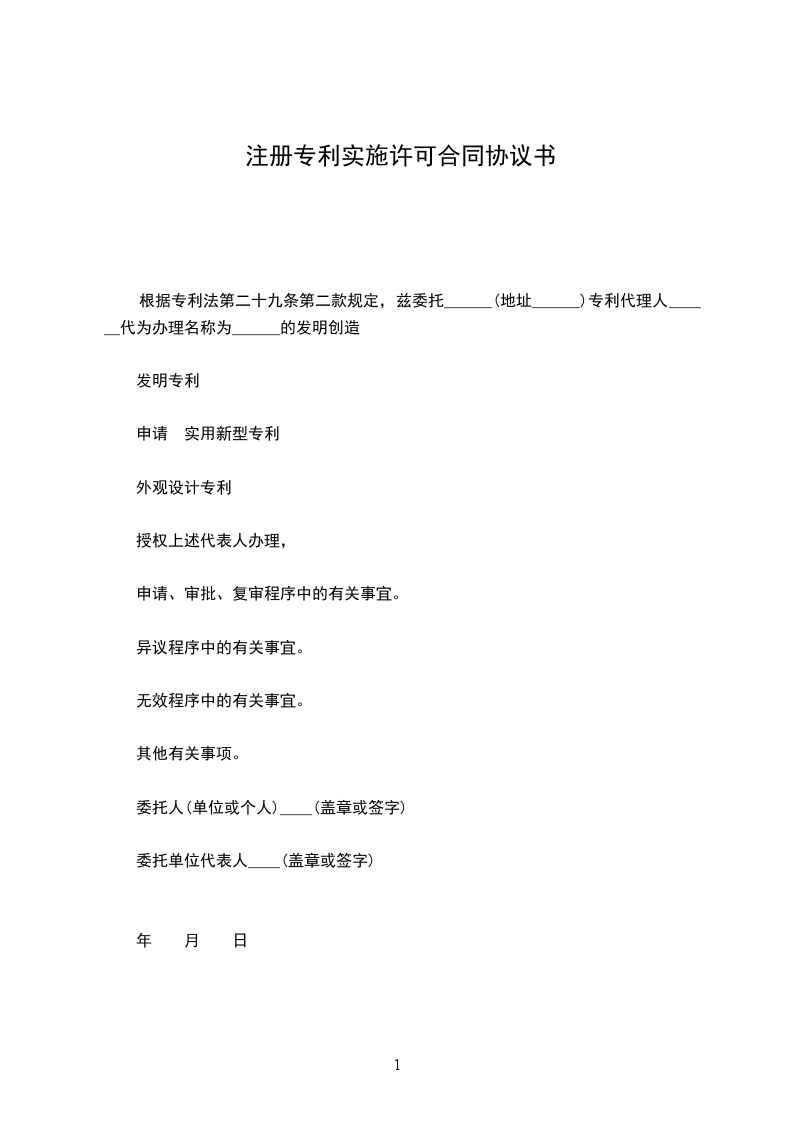 根据专利法第二十九条第二款规定,兹委托______(地址______)专利代理人______代为办理名称为______的发明创造