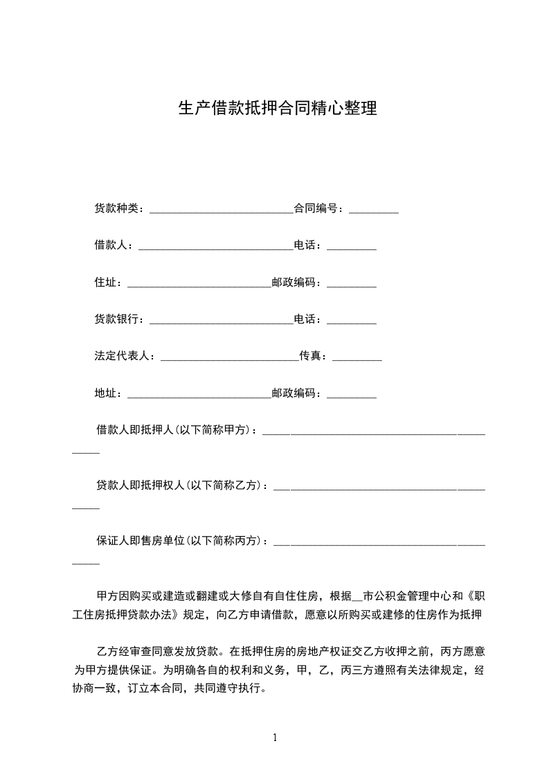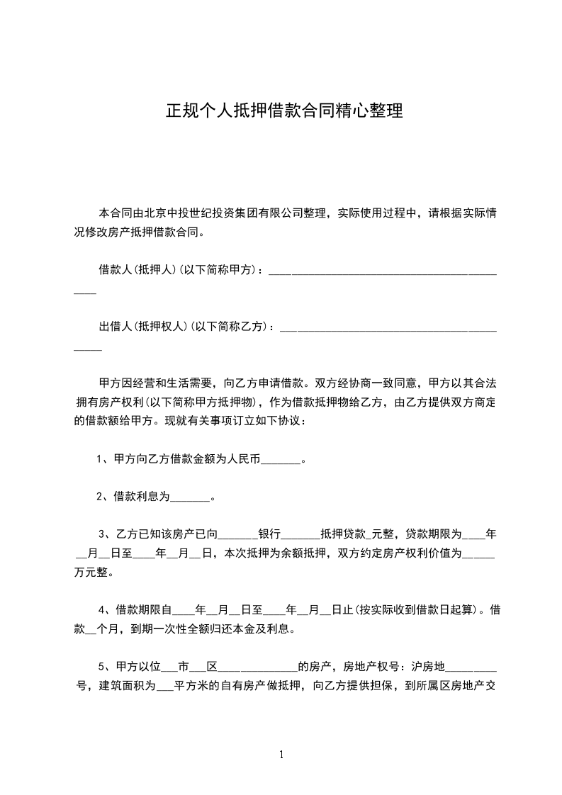 本合同由北京中投世纪投资集团有限公司整理,实际使用过程中,请根据实际情况修改房产抵押借款合同。
