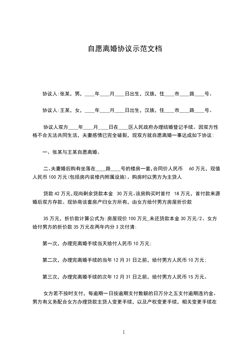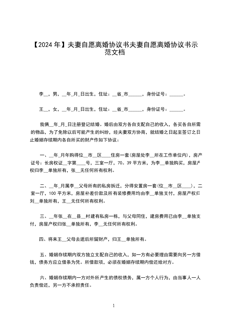 协议人:王某,女,____年____月____日出生,汉族,住____市____路____号。
