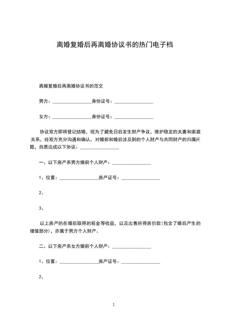 离婚复婚协议3甲方(男方):_________________王某某,男______年____月____日生汉族户籍地:_________________身份证号:_________________