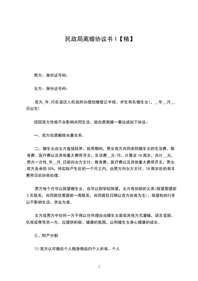 (1)双方认可婚后个人随身物品归个人所有。个人