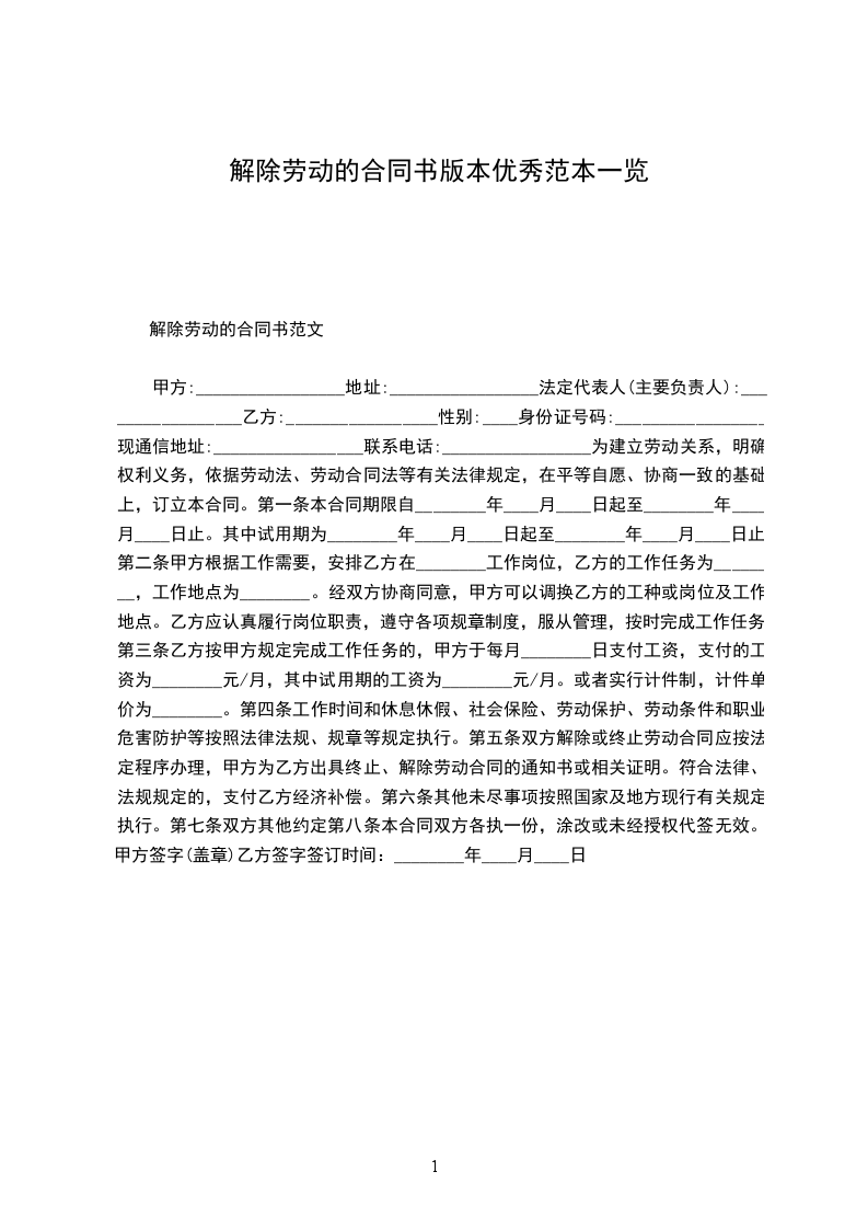 经方提出,甲乙双方_年__月_日解除劳动合同。