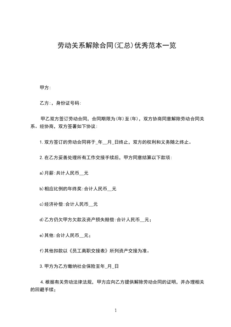 一、符合《劳动合同法》第三十六条经双方当事人协商一致,解除劳动合同(关系);