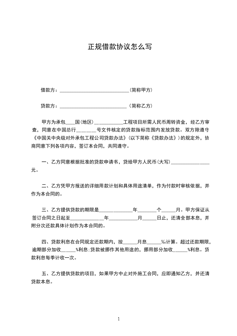 一、甲方向乙方借款(大写)_________万元,用作开发________的周转金。附用款计划。