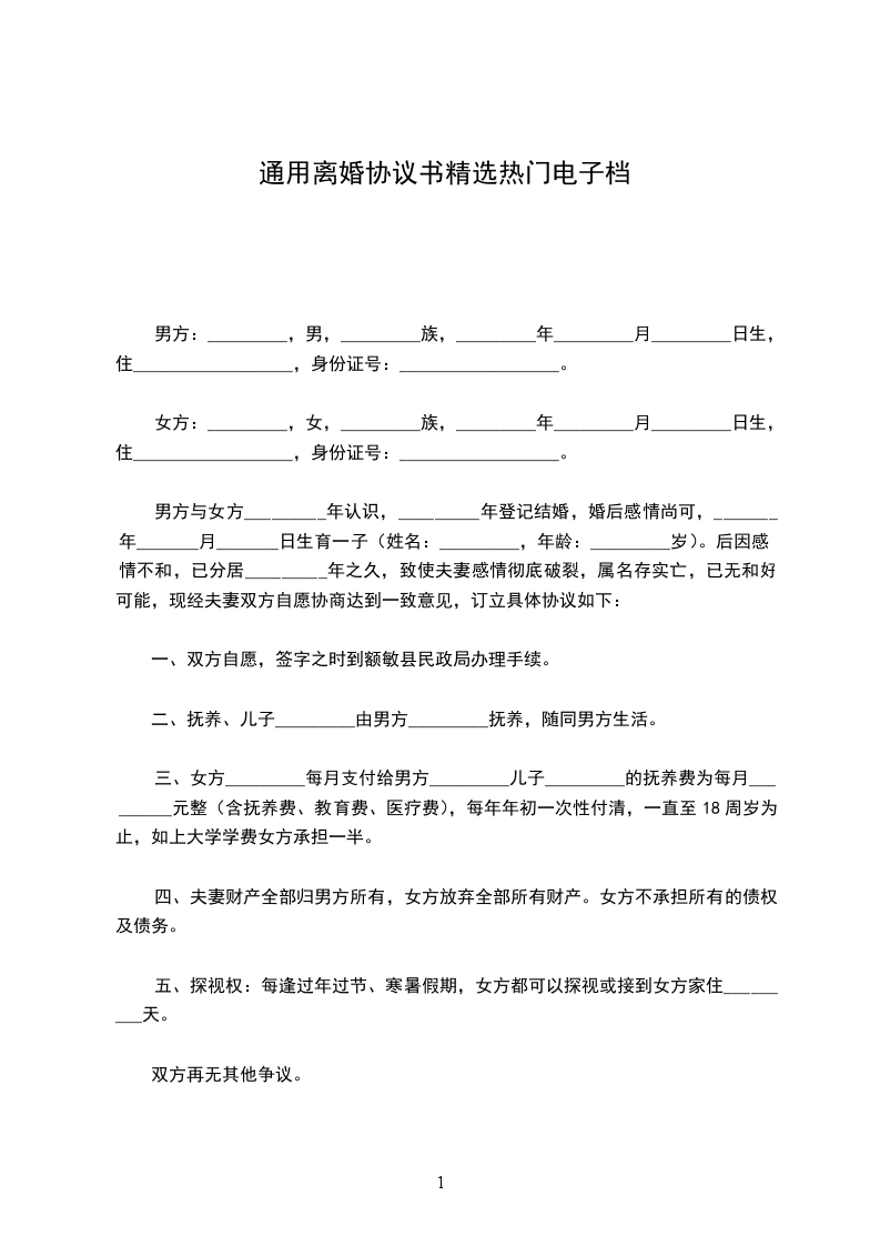 本协议一式三份,自婚姻登记机关颁发《离婚证》之日起生效,男、女双方各执一份,婚姻登记机关存档一份。