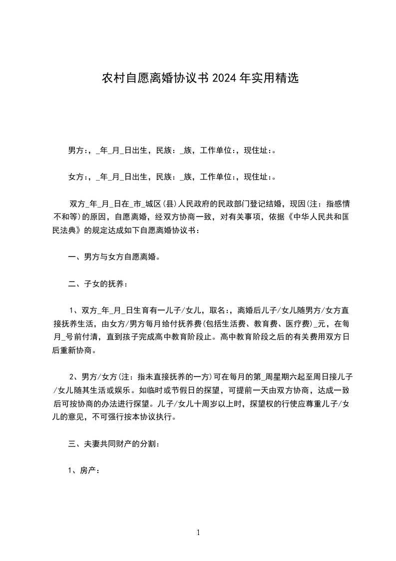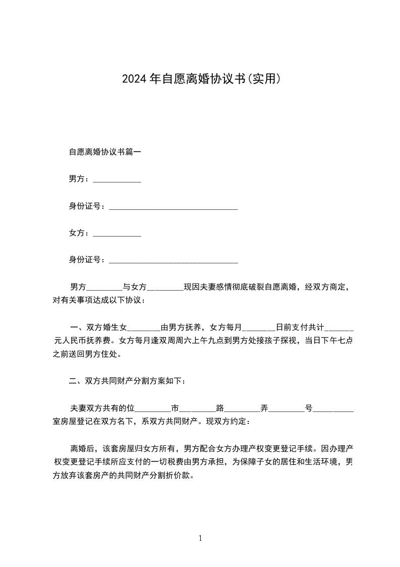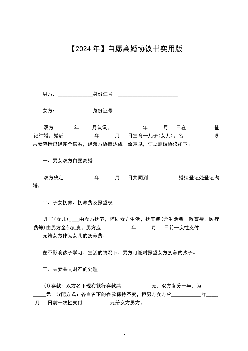一、男女双方自愿离婚