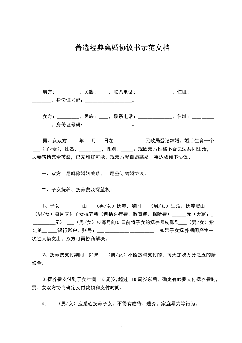 女方:姓名,民族,__年__月__日出生,住址:北京市海淀区,身份证号码:。