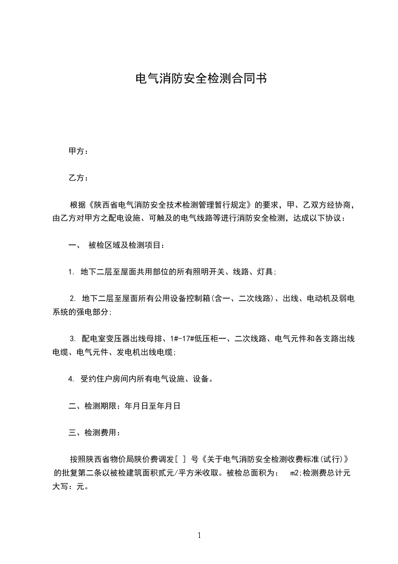 根据《陕西省电气消防安全技术检测管理暂行规定》的要求,甲、乙双方经协商,由乙方对甲方之配电设施、可触及的电气线路等进行消防安全检测,达成以下协议: