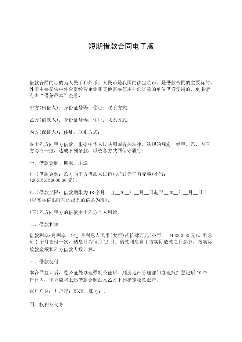 1、借款时间共伍年,自__年_月_日起,至__年_月_日止。出借方将__年_月_日之前,将该款项一次性交付借款方。