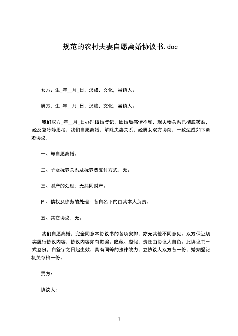 一、与自愿离婚。