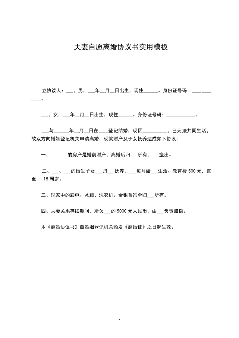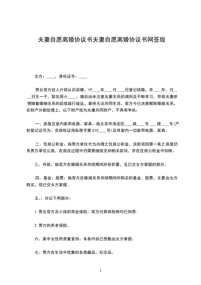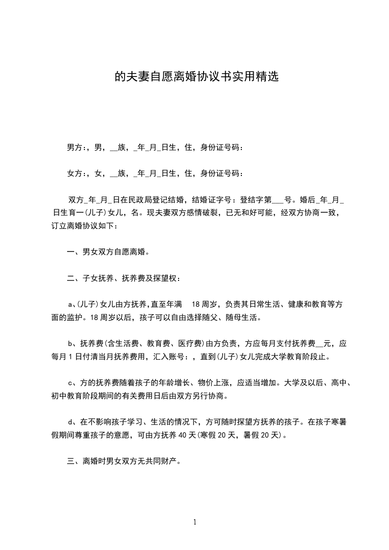 一、男女双方自愿离婚。