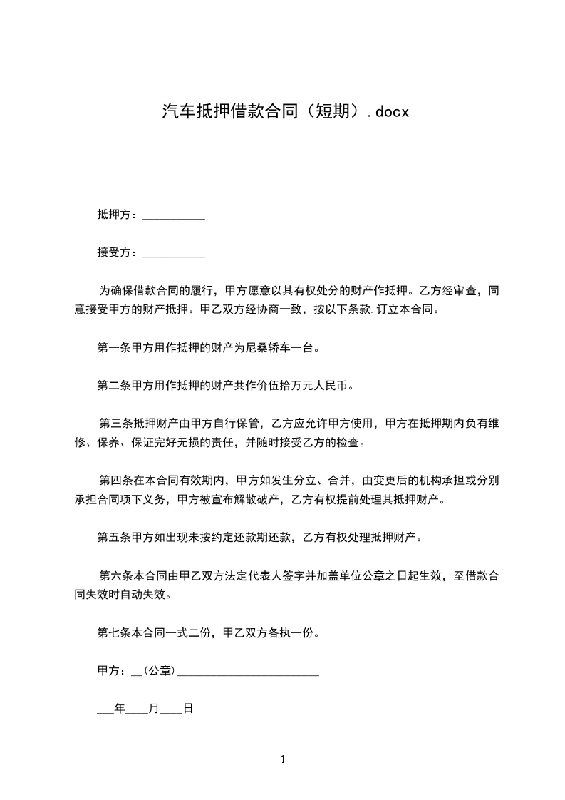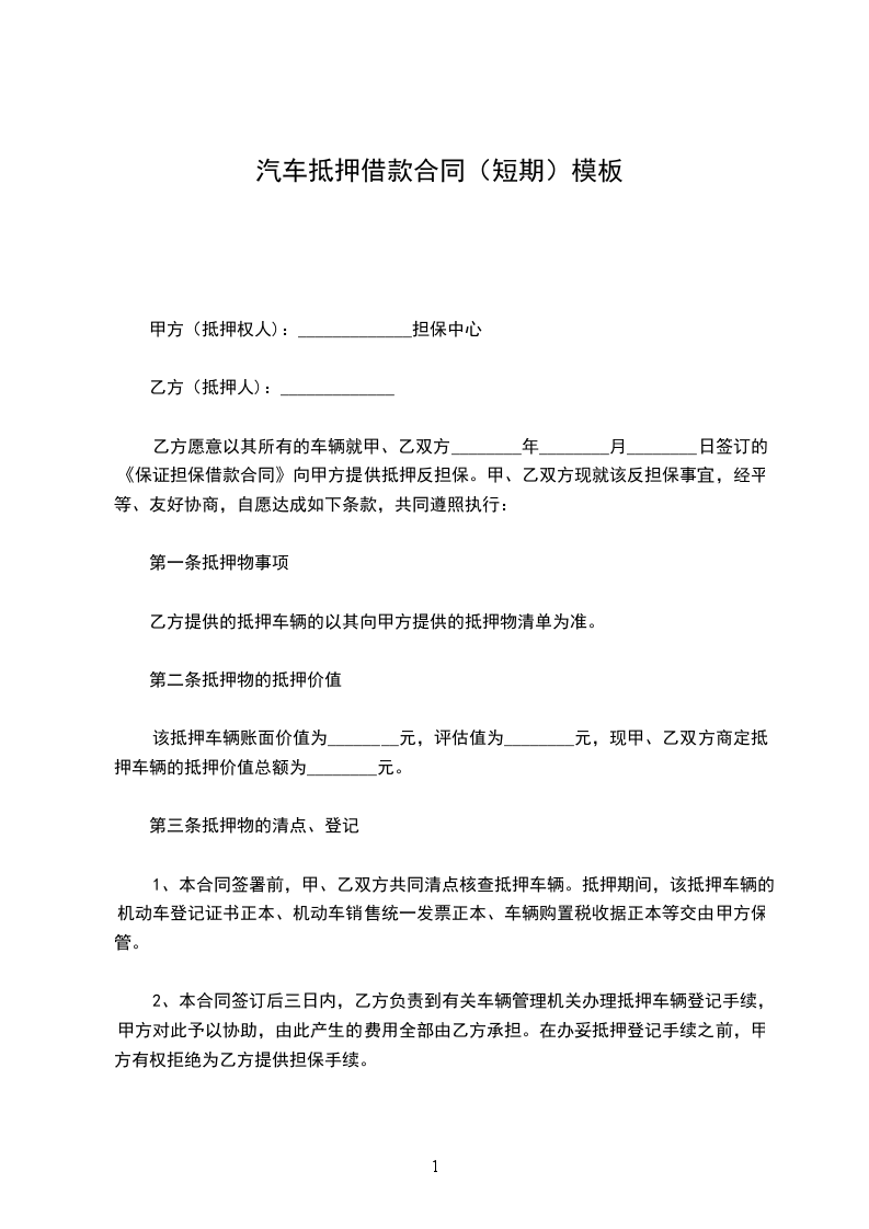 第八条乙方应在本合同签订之日起【】日内向登记机关办理本合同项下抵押物的抵押登记手续。