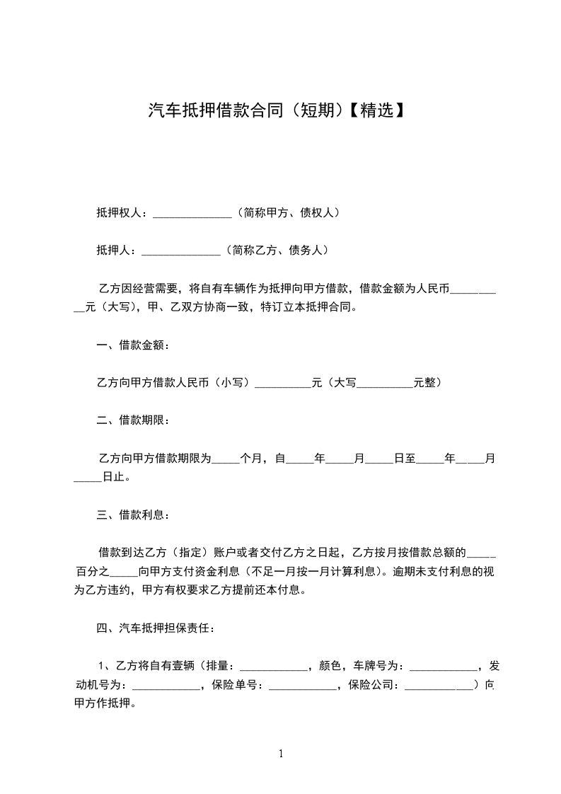 乙方因【】需要,向甲方借款并以其合法所有的车辆作为抵押物(以下简称抵押物)抵押给甲方。双方经协商一致,订立本抵押借款合同,以资共同遵守。
