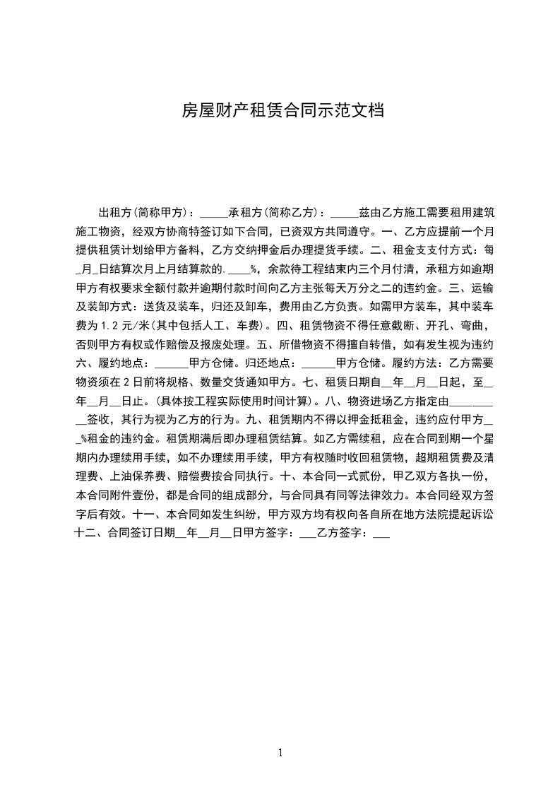 兹由乙方施工需要租用建筑施工物资,经双方协商特签订如下合同,已资双方共同遵守。