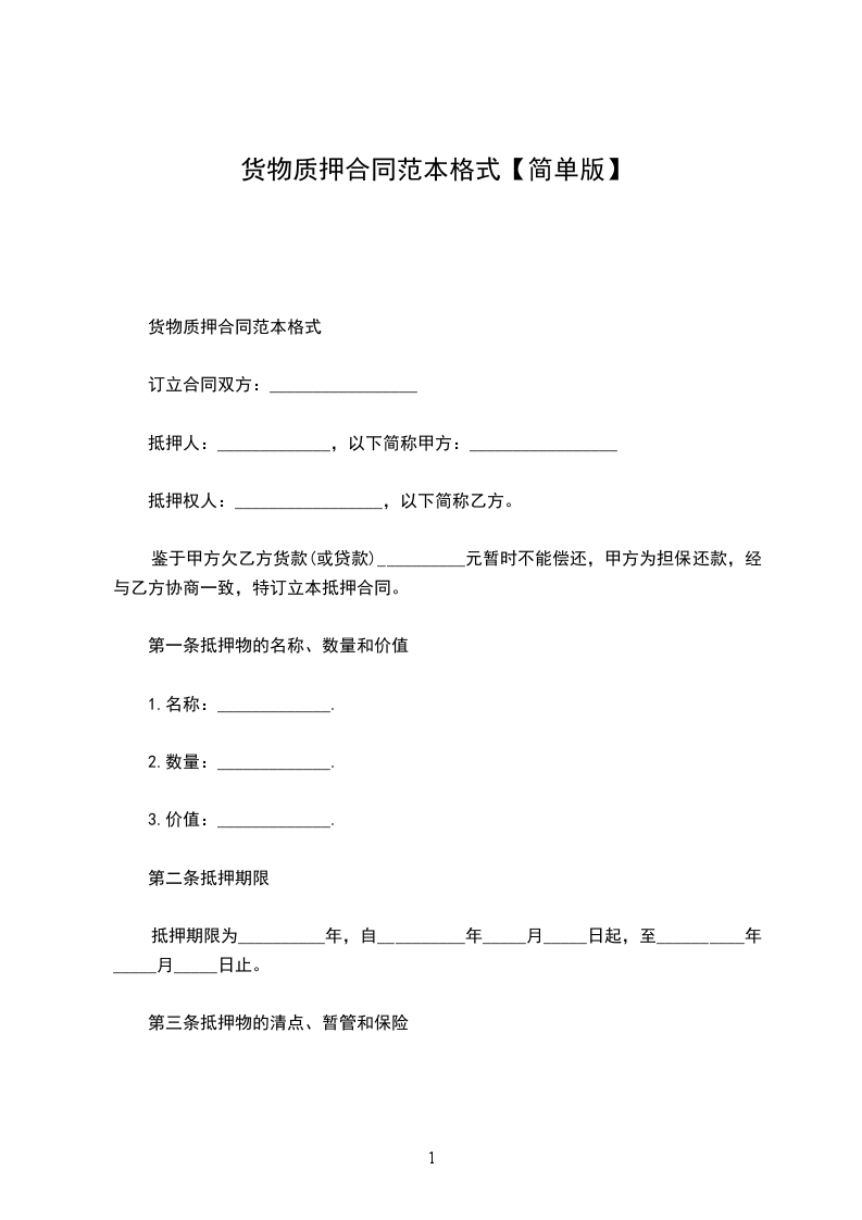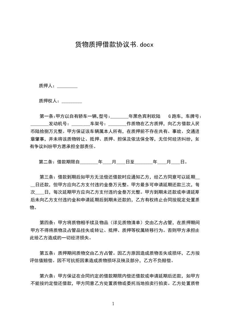 贷款人(质权人):_____(以下简称甲方)
