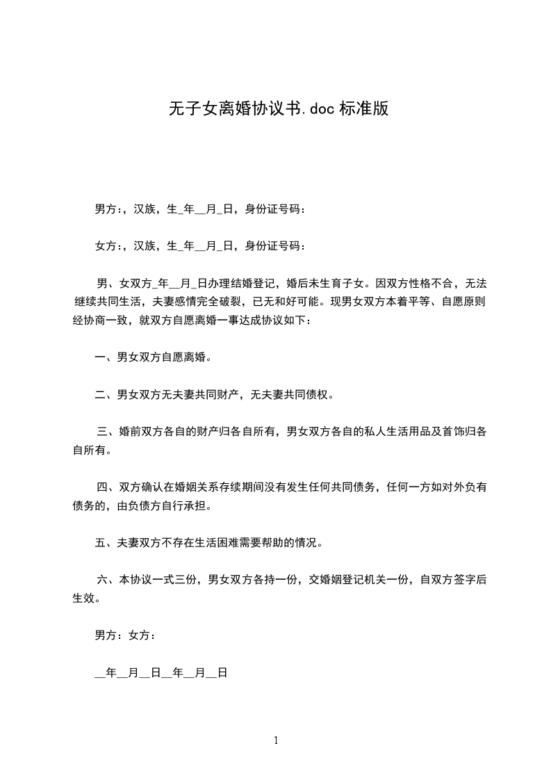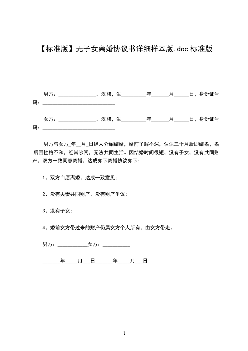 篇4男方:_________,汉族,______年____月____日生,住____________________________,身份证号码____________________________。