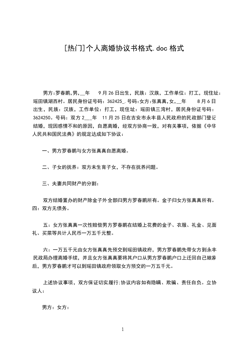 女方:____,女,汉族,____年__月__日生,住______,身份证号码: