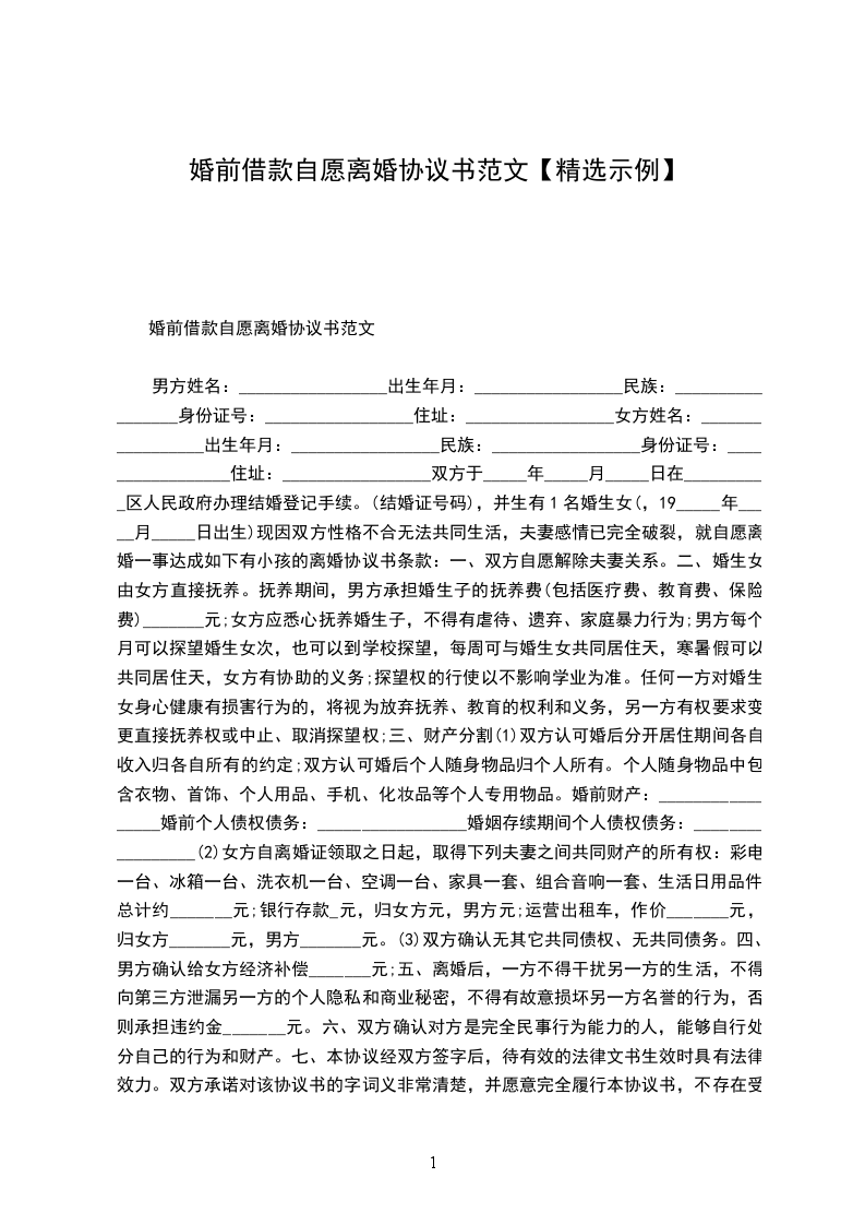 女方:____,女,汉族,______年______月______日生,住,身份证号码:_________________________________