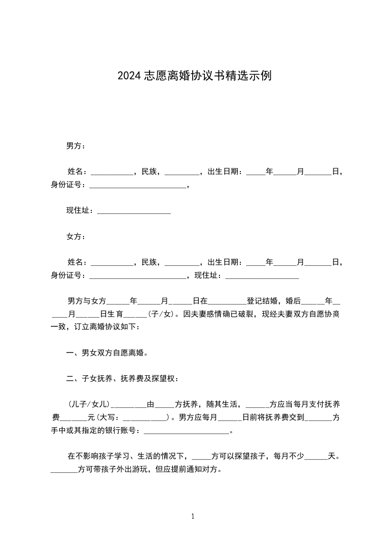 男方:____,男,汉族,______年______月______日生,住,身份证号码:_________________________________