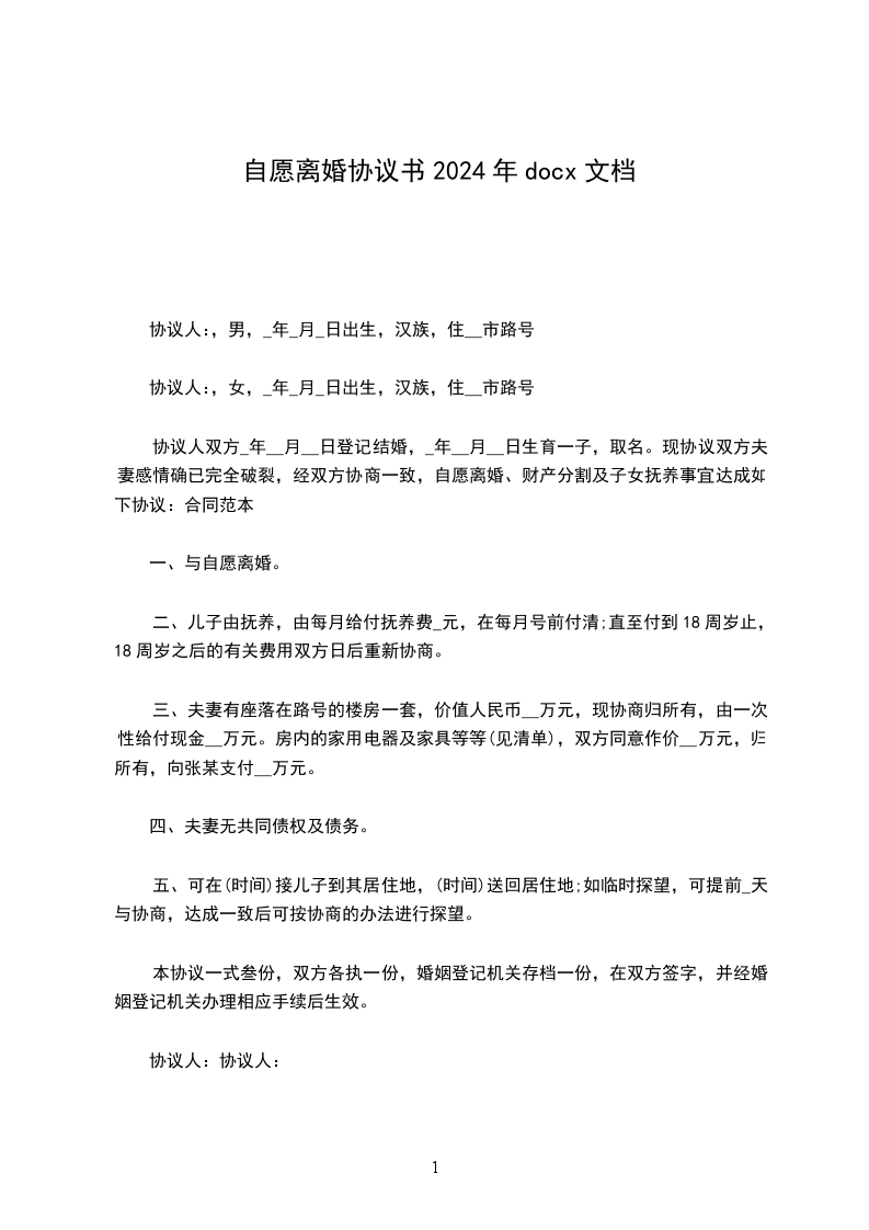 篇2男方:,男,汉族,__年__月__日生,住: