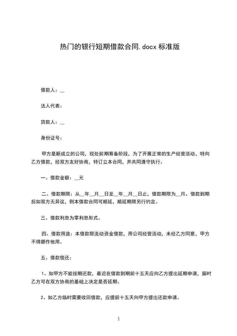 2、如乙方临时需要收回借款,应提前十五天向甲方提出还款申请。