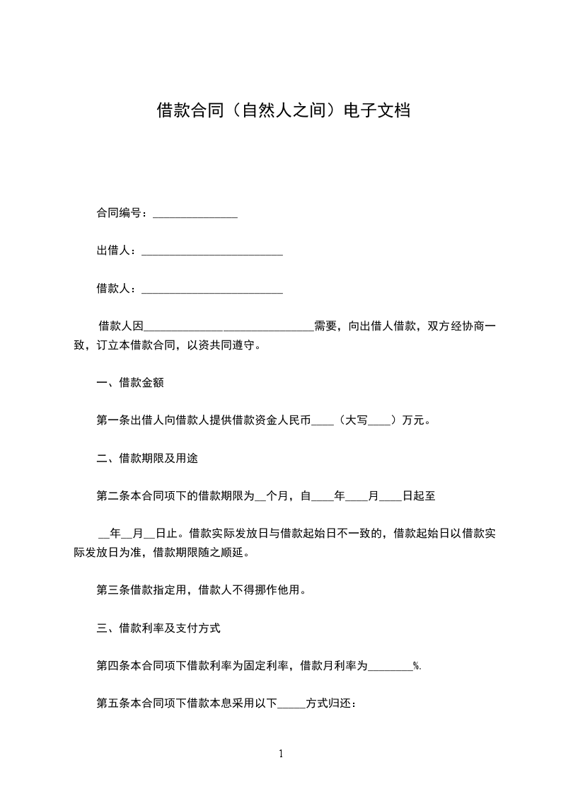 第一条借款币种和金额:(元)。