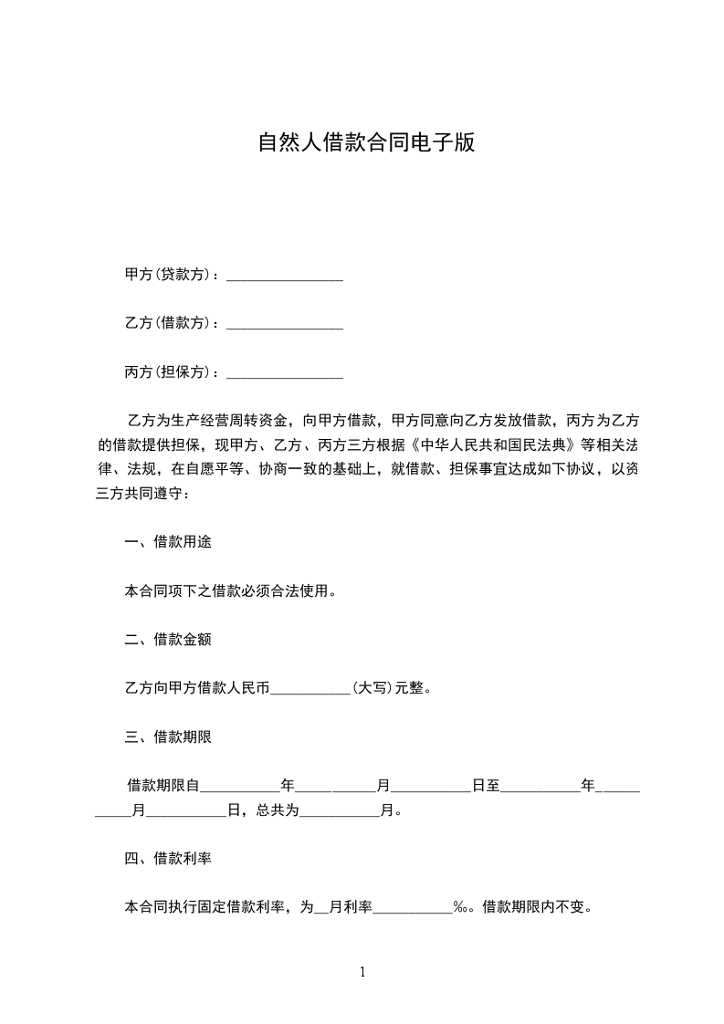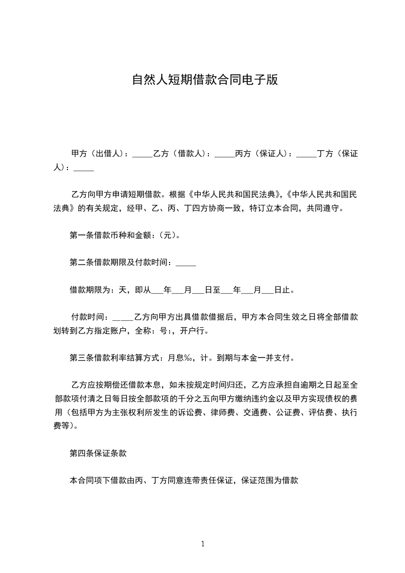 甲方(出借人):_____乙方(借款人):_____丙方(保证人):_____丁方(保证人):_____