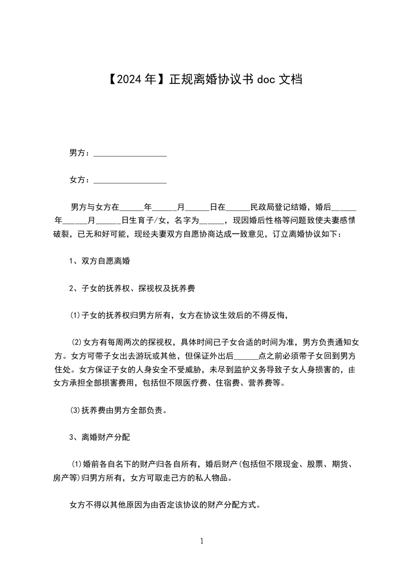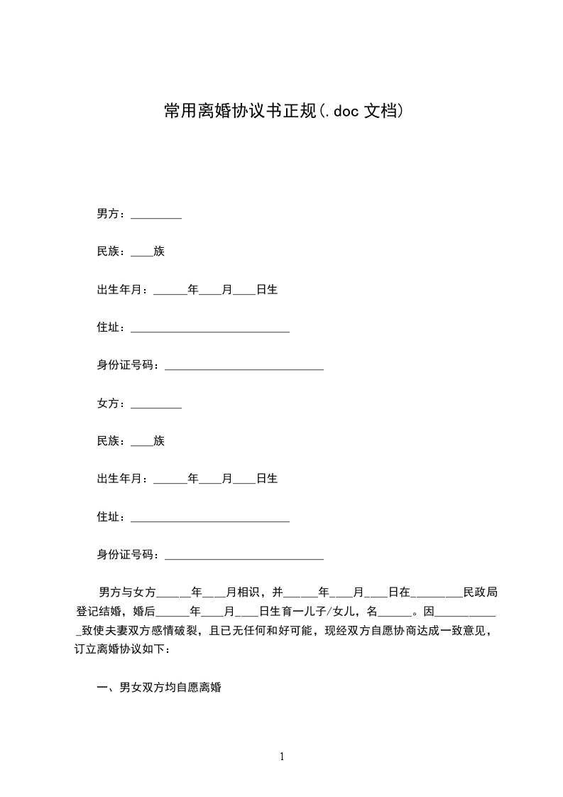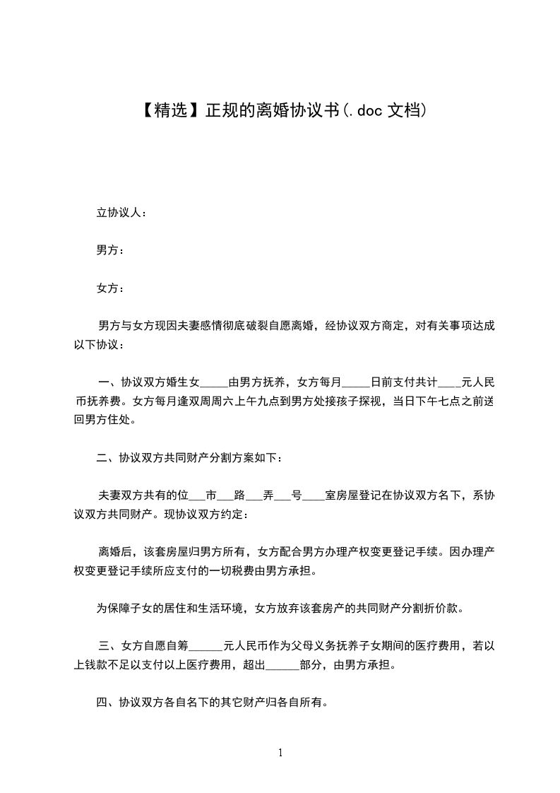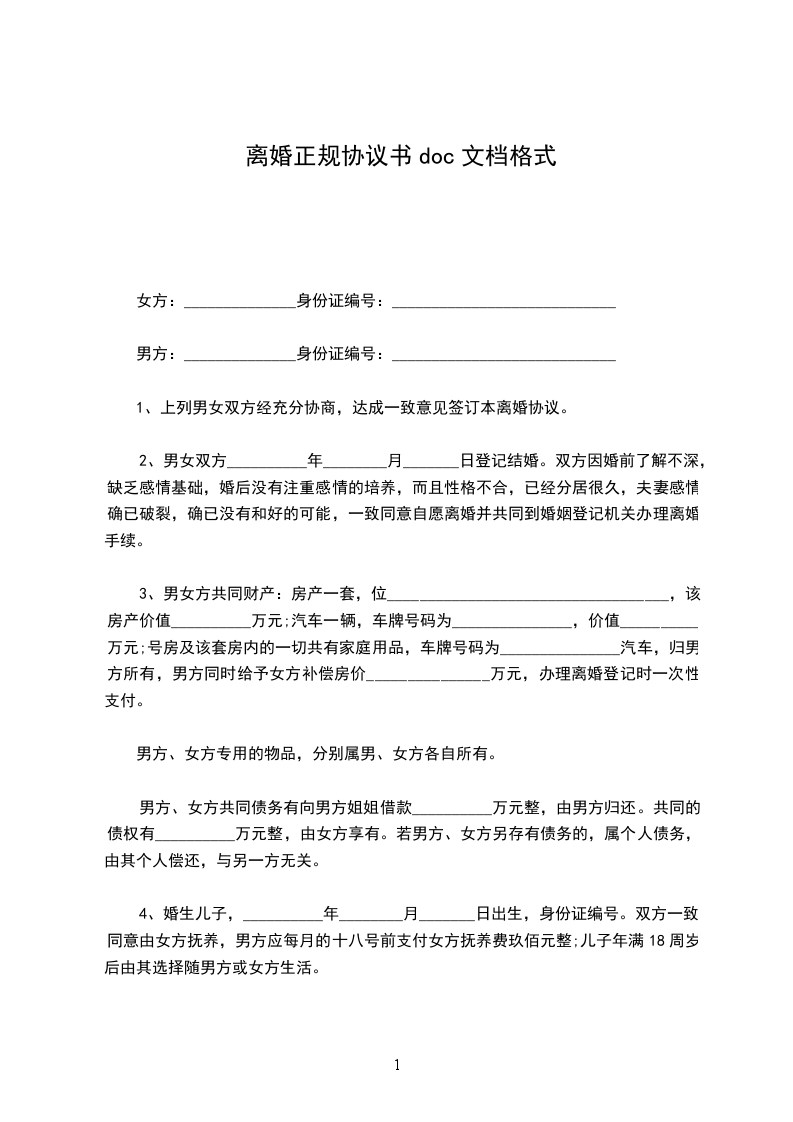 注:本协议书范本为___地区民政局统一格式。