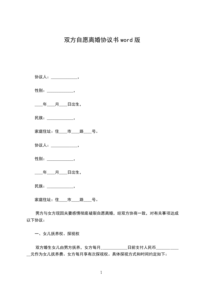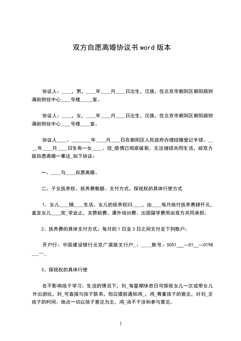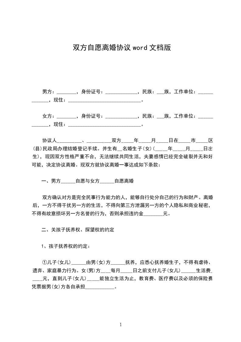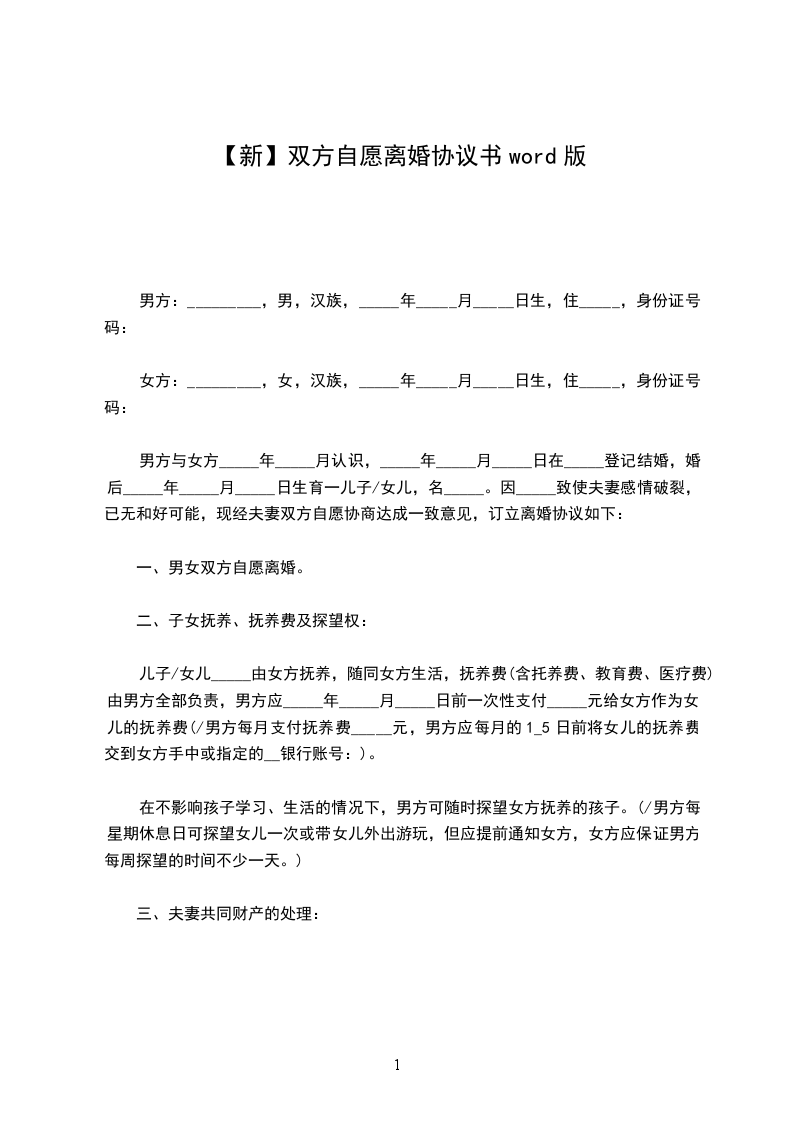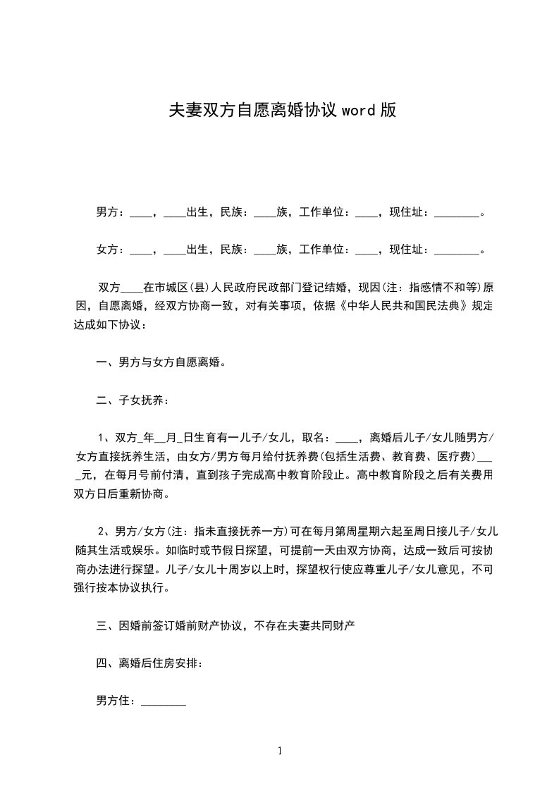 男方与女方_年_月认识,_年__月_日在登记结婚,婚后无子女。因致使夫妻感情破裂,已无和好可能,现经夫妻双方自愿协商达成一致意见,订立离婚协议如下: