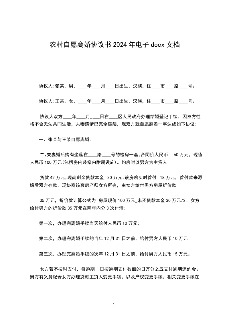 协议人:王某,女,____年____月____日出生,汉族,住____市____路____号。