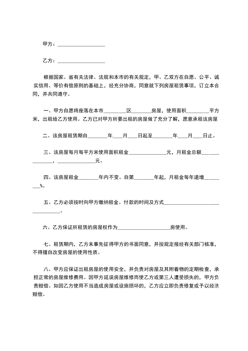 第六条租赁期满租赁期满后,本合同即终止,届时乙方须将房屋退还甲方。