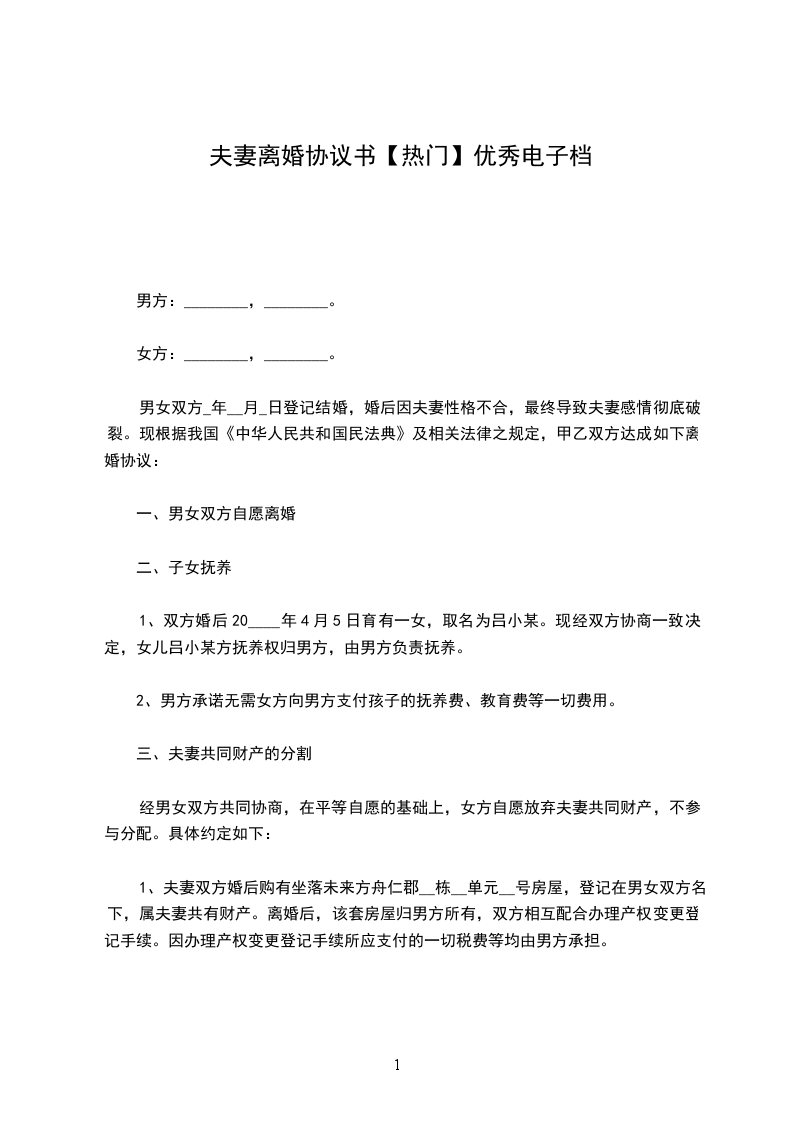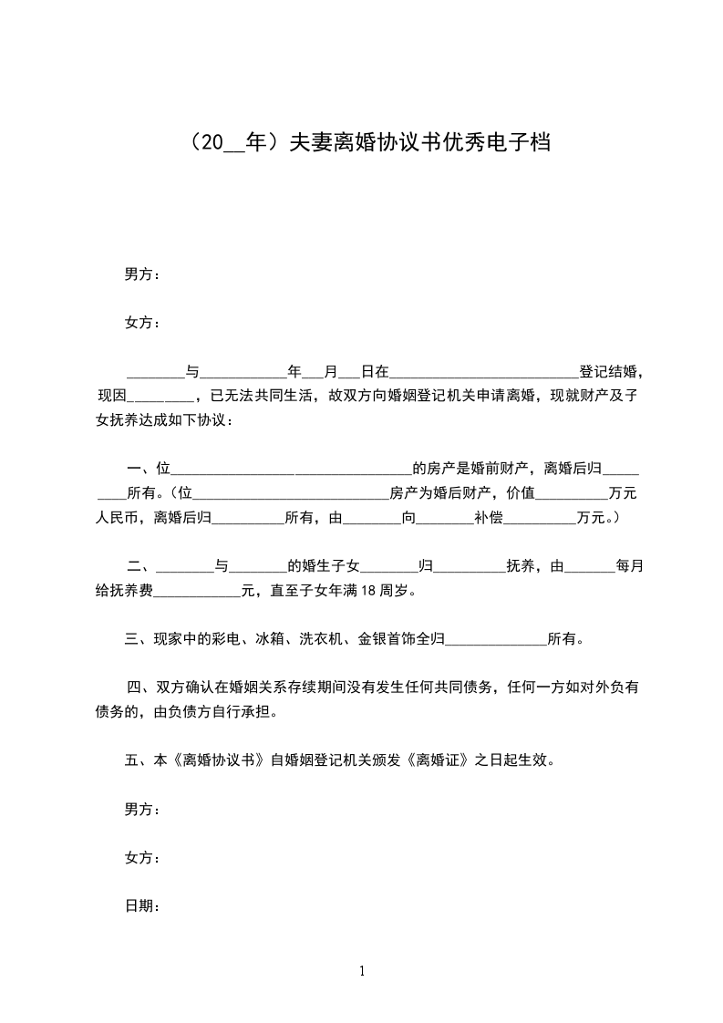 本协议一式三份,自婚姻登记机颁发《离婚证》之日起生效,男、女双方各执一份,婚姻登记机关存档一份。