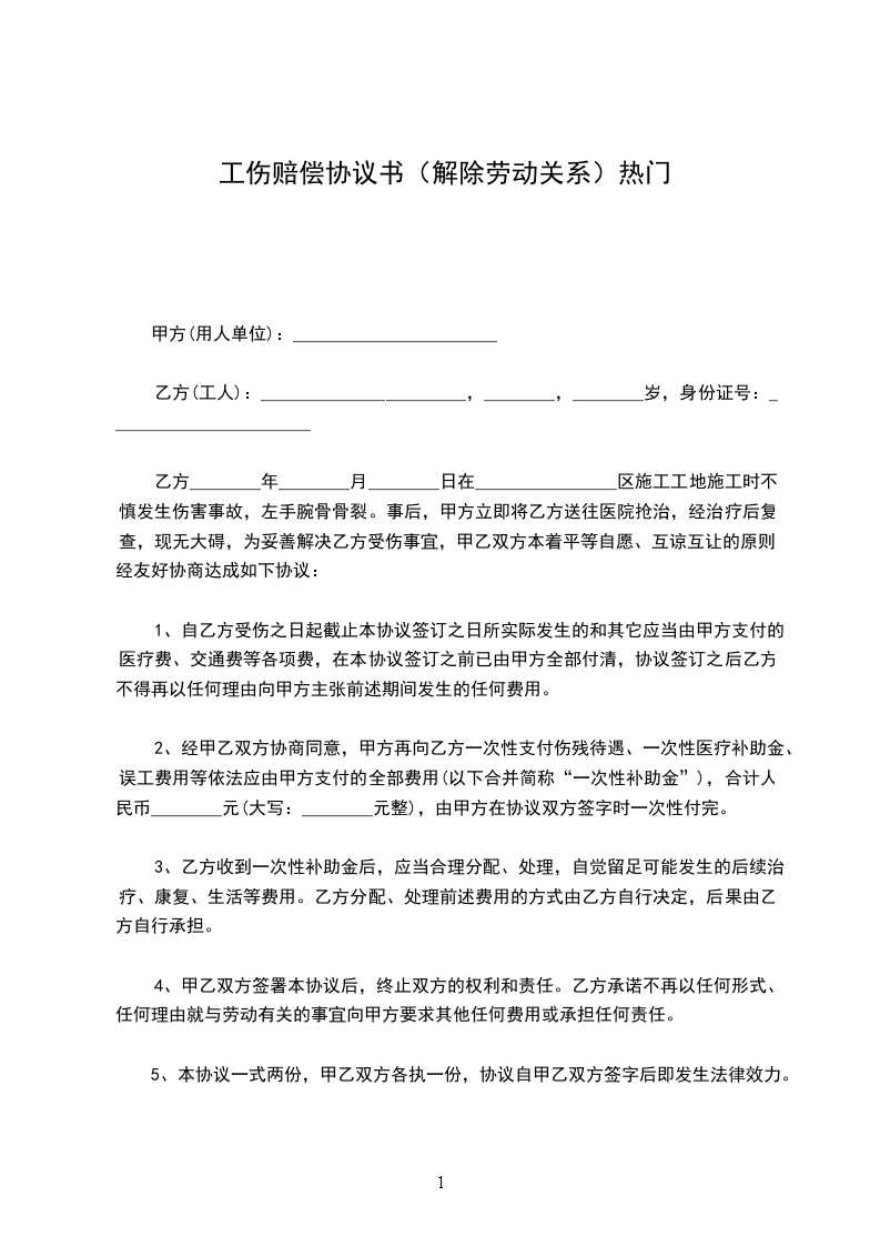 6、本协议为一次性终结处理协议,双方当事人应以此为断,全面切实履行合同,不得再以任何理由纠缠。乙方今后身体或精神出现任何问题均与甲方无关。