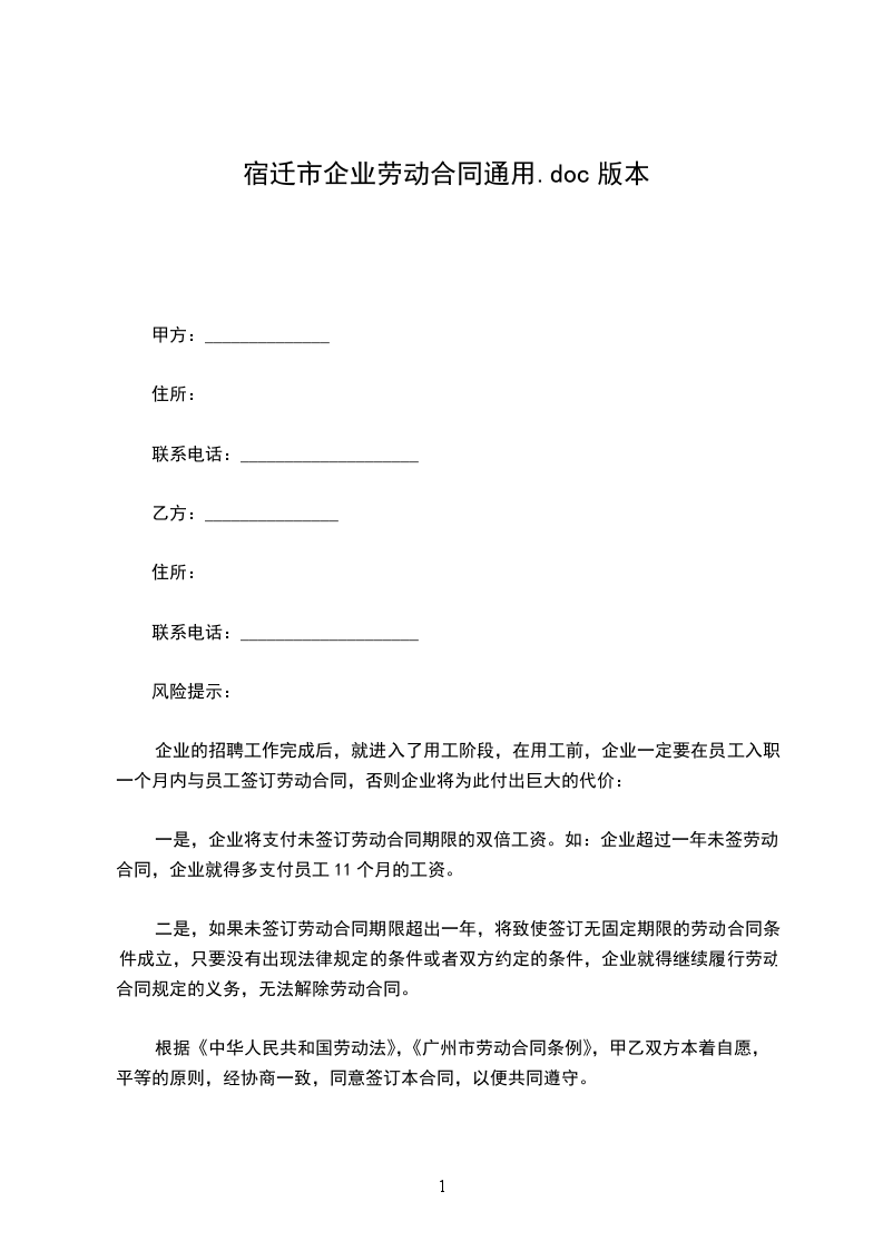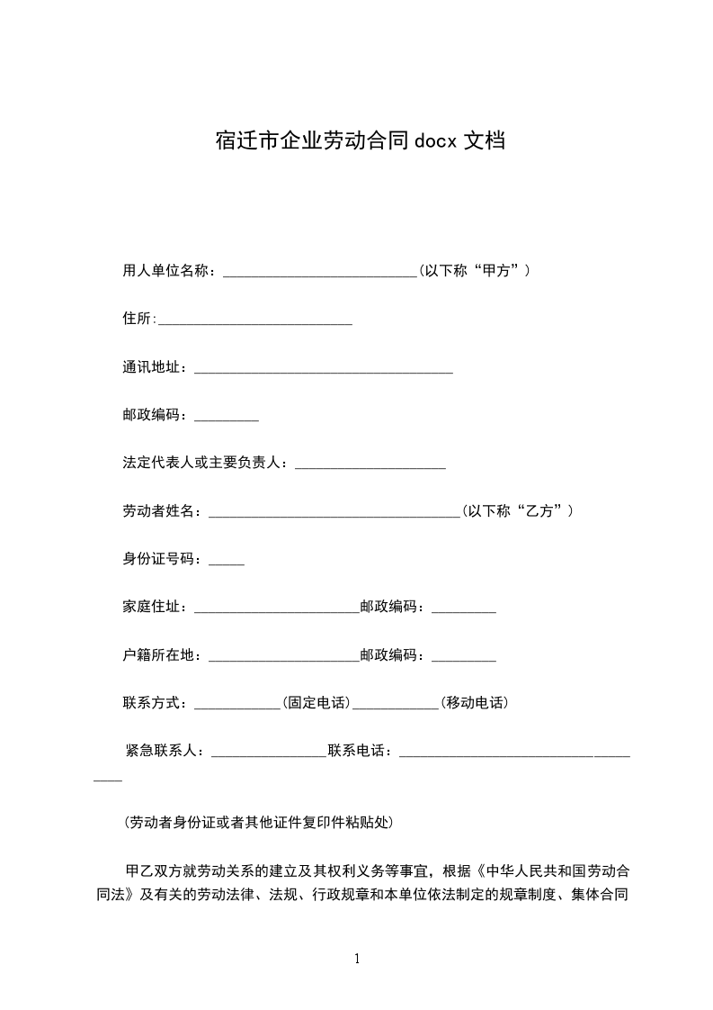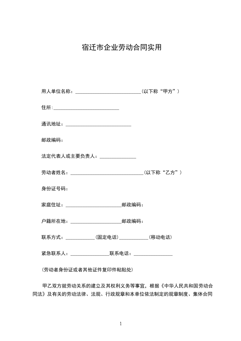 劳动者姓名:______________________________(以下称“乙方”)