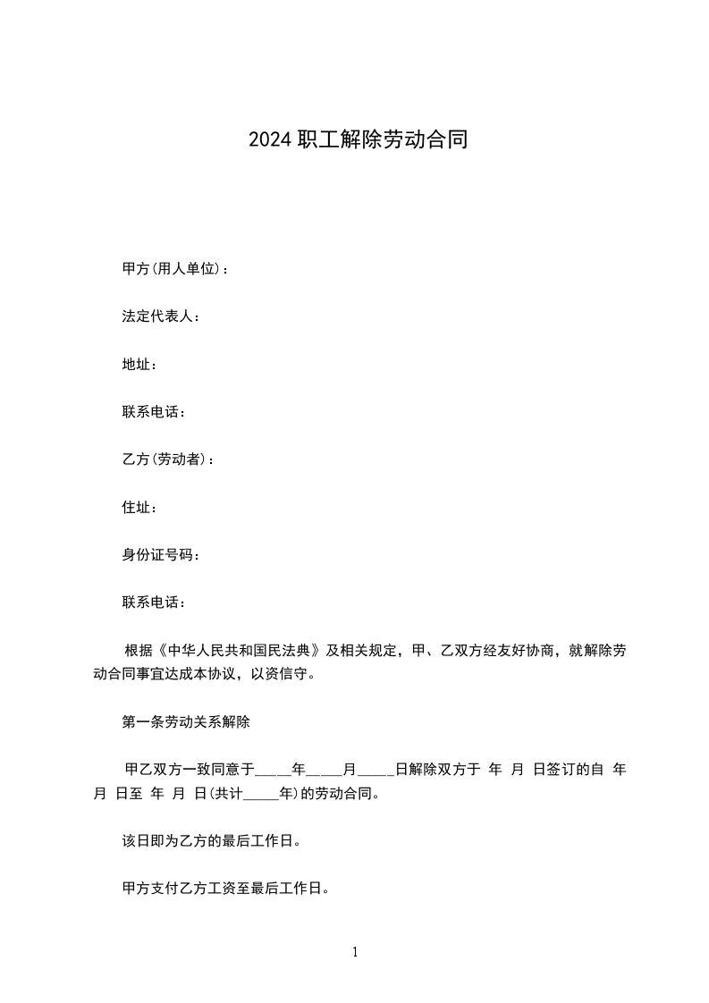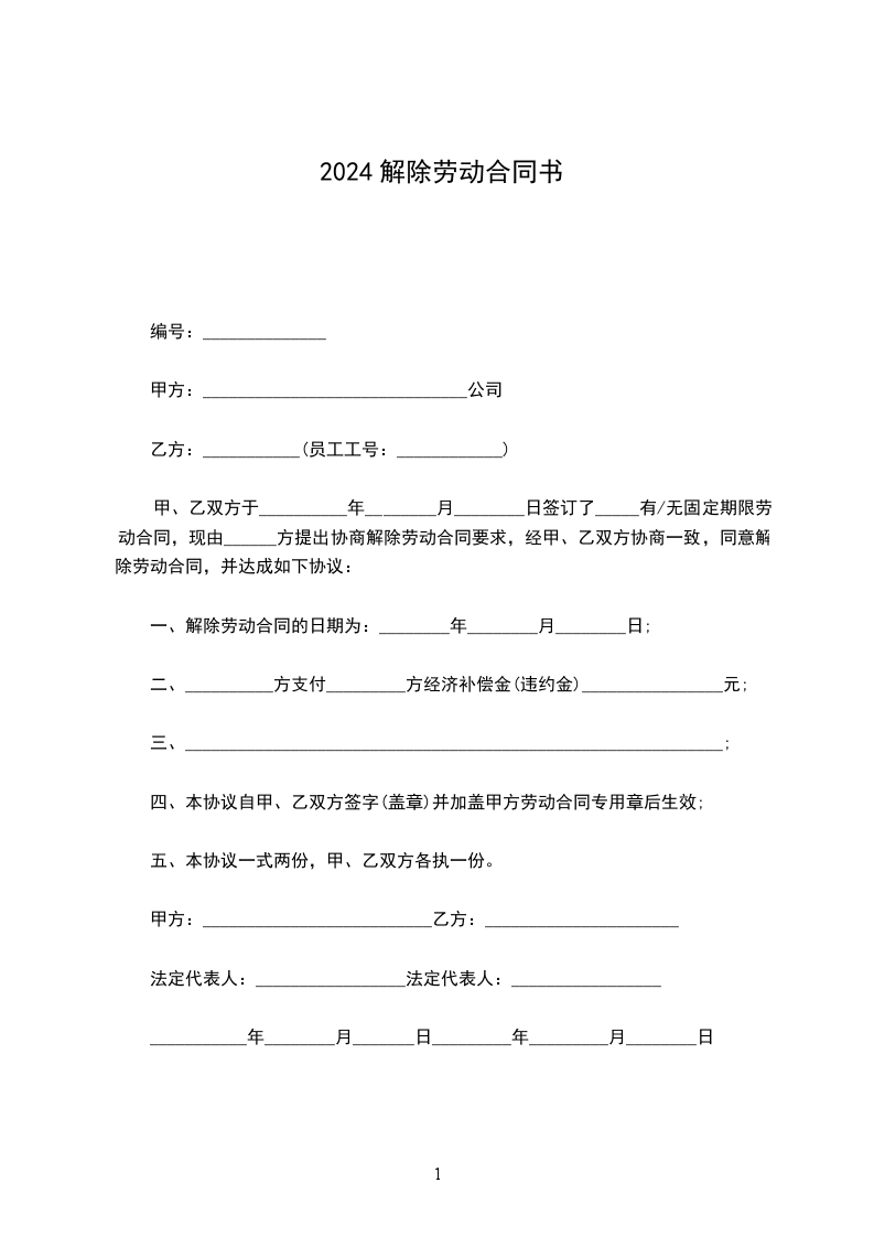 第一条双方一致同意______年____月____日解除劳动合同,双方的劳动权利义务终止。