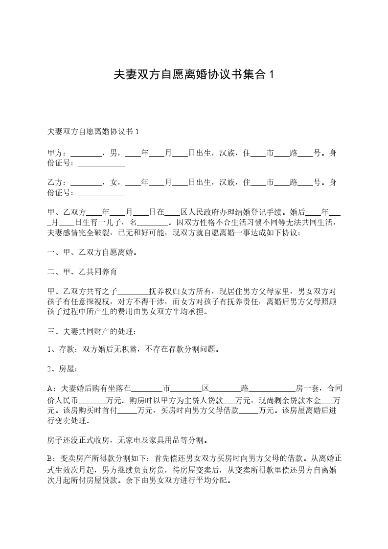 夫妻双方自愿离婚协议书3甲方:______________身份证号码:__________________________________________