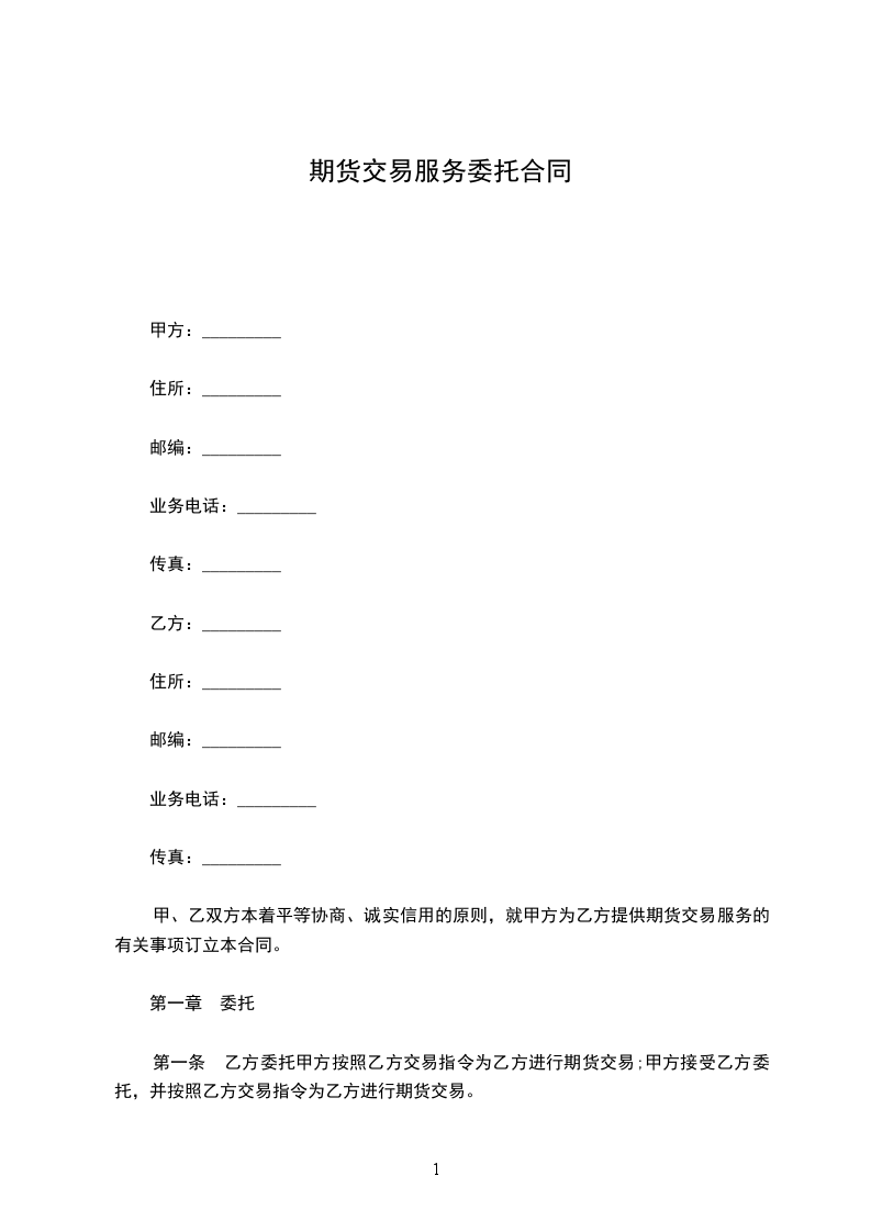 第一条 乙方委托甲方按照乙方交易指令为乙方进行期货交易;甲方接受乙方委托,并按照乙方交易指令为乙方进行期货交易。