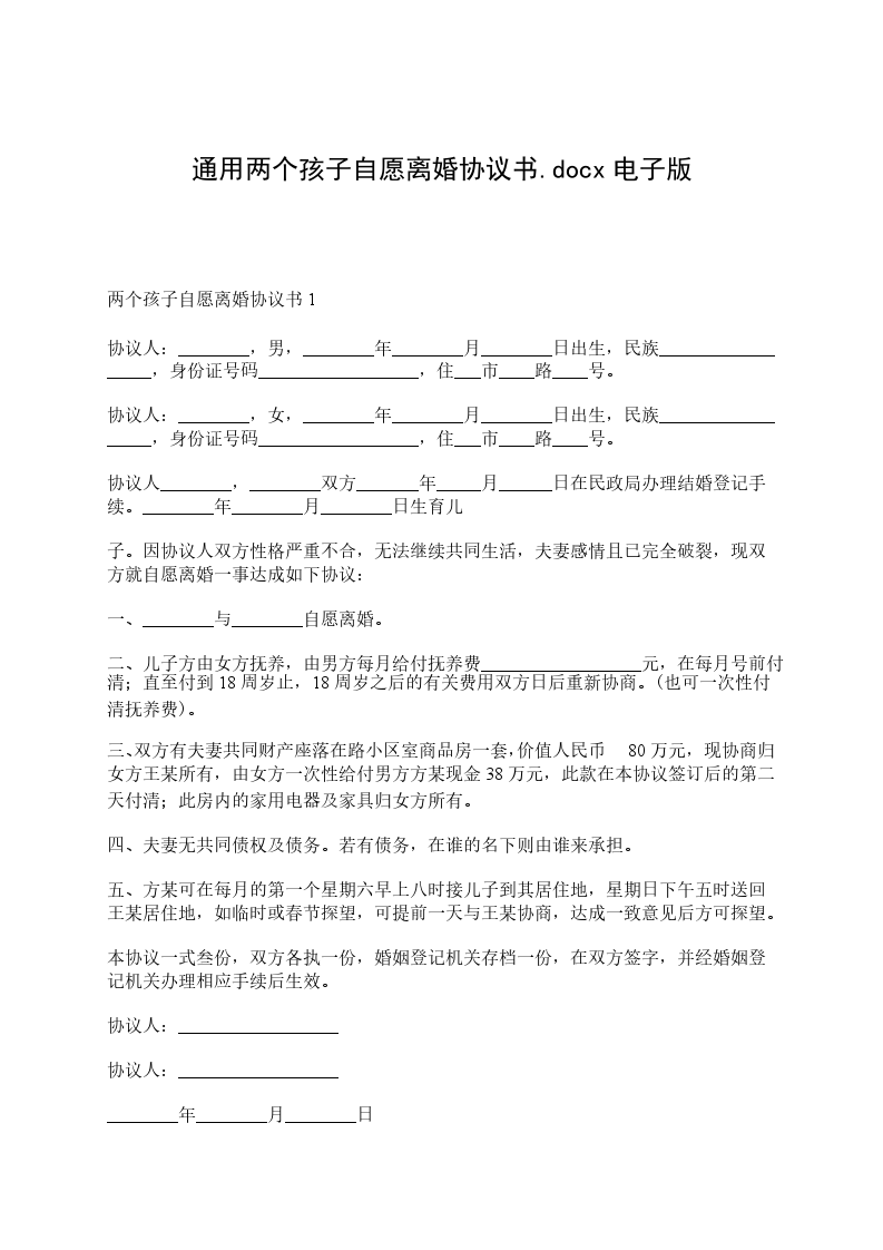 自愿离婚协议书电子版篇十立协议人:自愿离婚协议书电子版篇十一