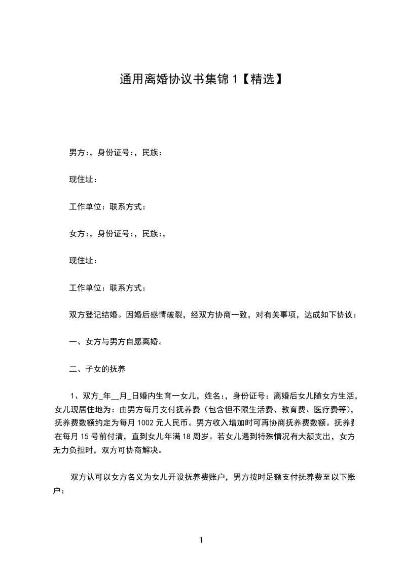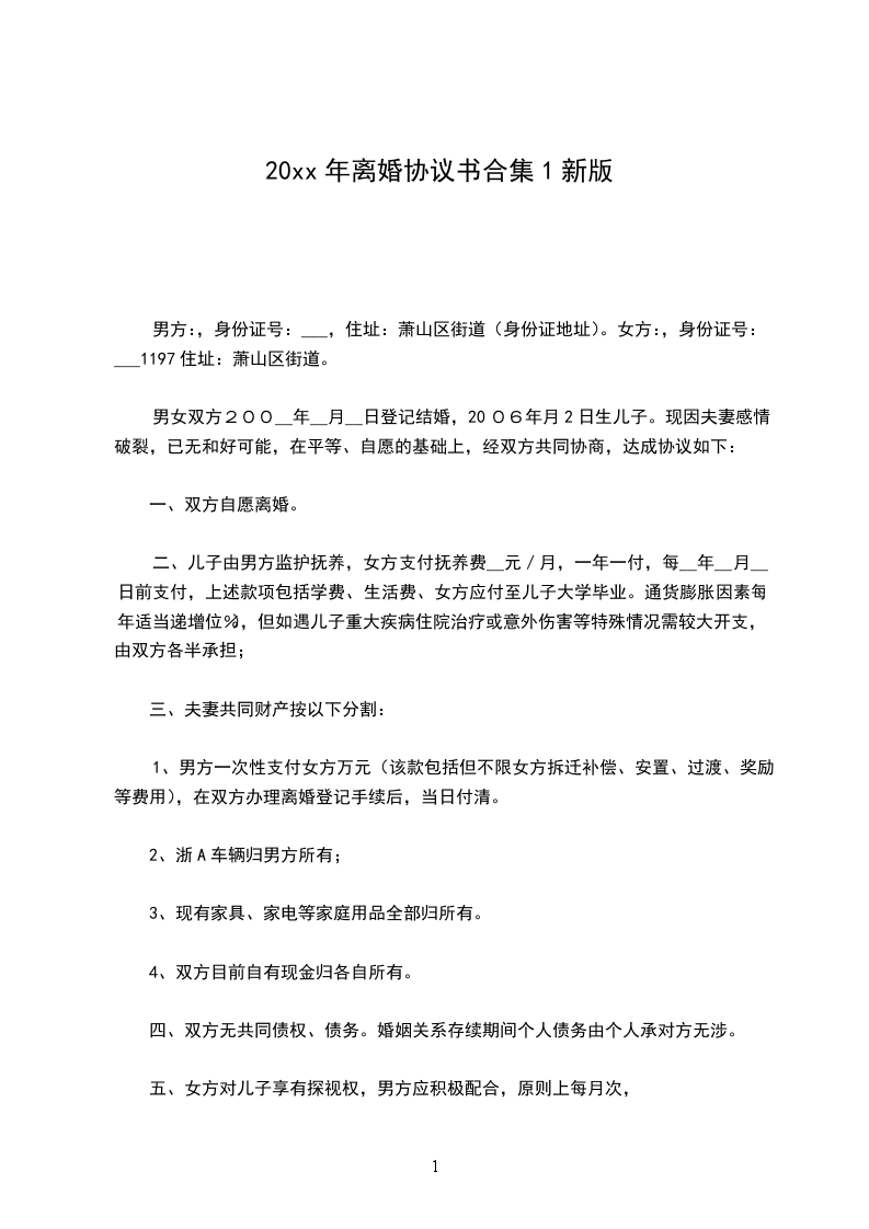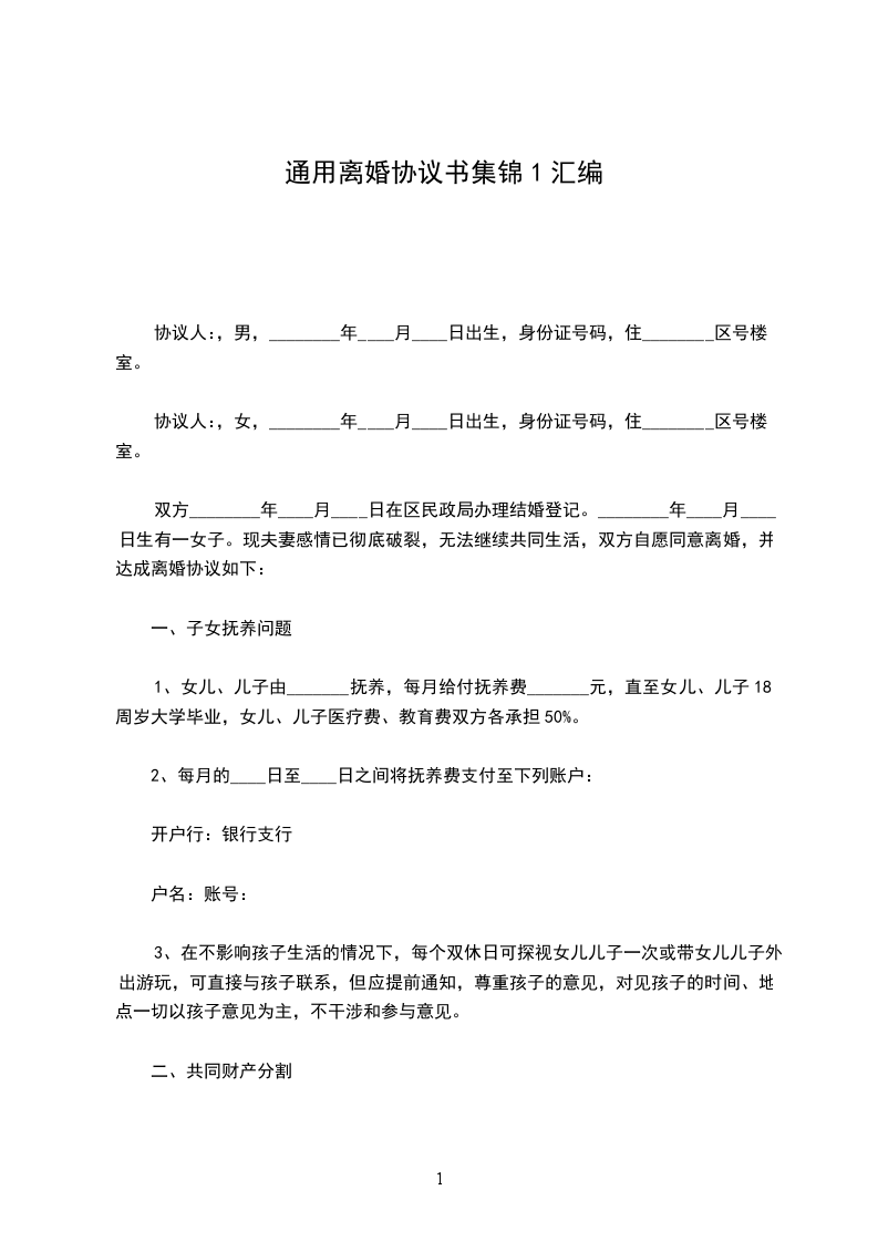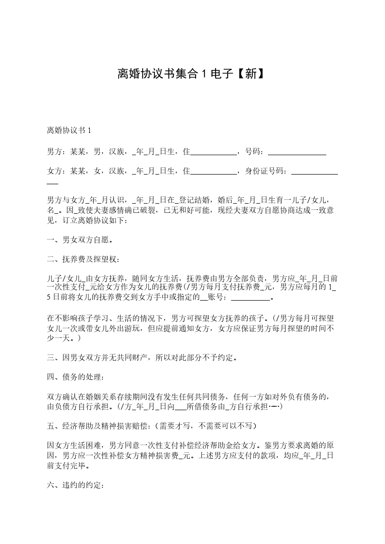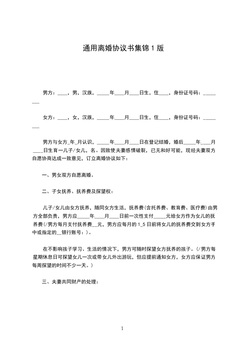 男方与女方_年_月认识,_年_月_日在_登记结婚,婚后_年_月_日生育一儿子/女儿,名_。因_致使夫妻感情确已破裂,已无和好可能,现经夫妻双方自愿协商达成一致意见,订立离婚协议如下: