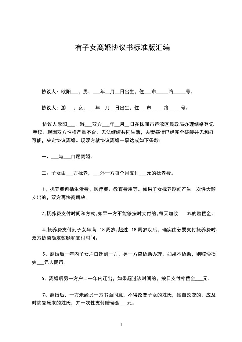 篇3协议人:欧阳___,男,___年__月__日出生,住___市_____路_____号。