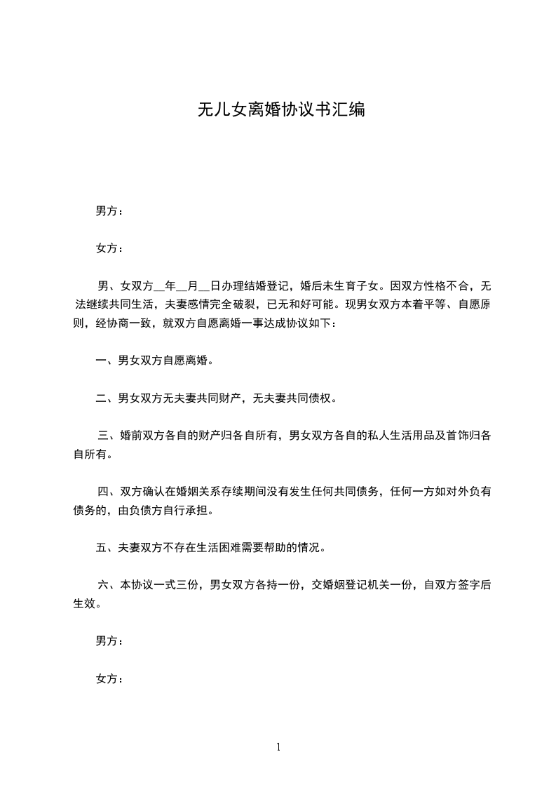 协议人:__________,女,_____年_____月_____日出生,住_____市_____路_____号。