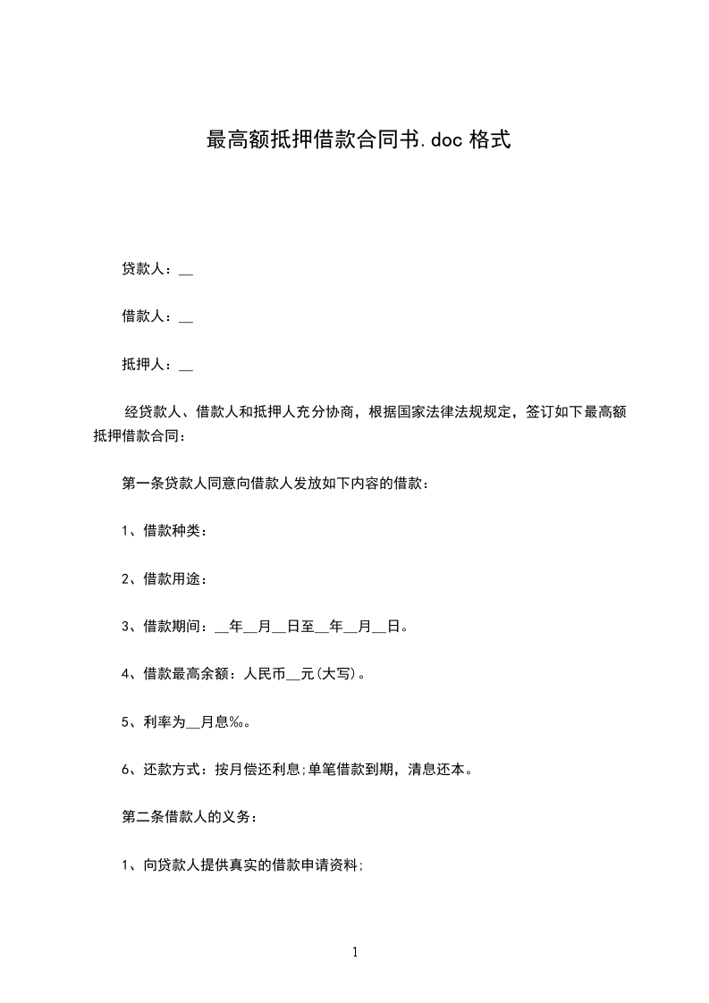 经贷款人、借款人和抵押人充分协商,根据国家法律法规规定,签订如下最高额抵押借款合同: