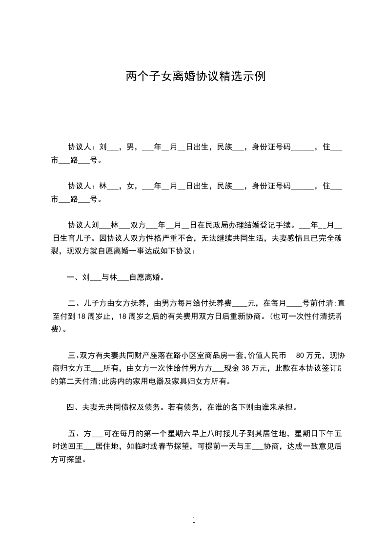 协议人刘___林___双方___年__月__日在民政局办理结婚登记手续。___年__月__日生育儿子。因协议人双方性格严重不合,无法继续共同生活,夫妻感情且已完全破裂,现双方就自愿离婚一事达成如下协议: