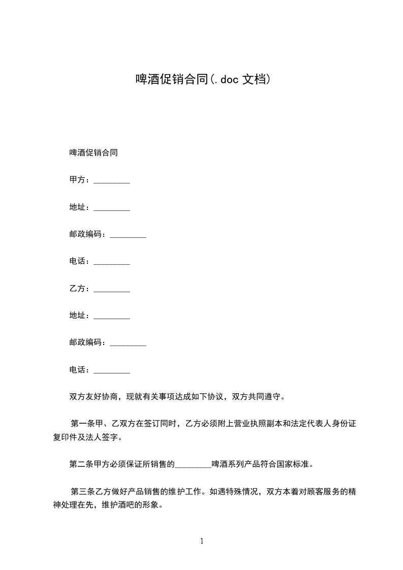 第二条 甲方必须保证所销售的_________啤酒系列产品符合国家标准。
