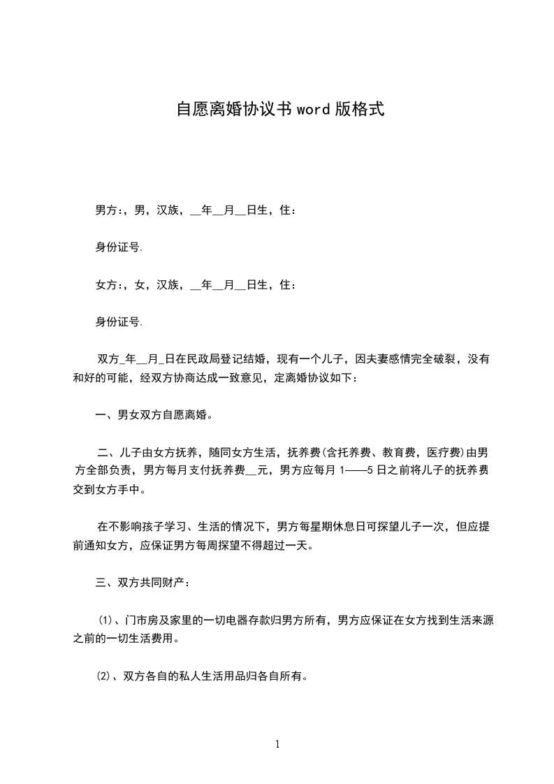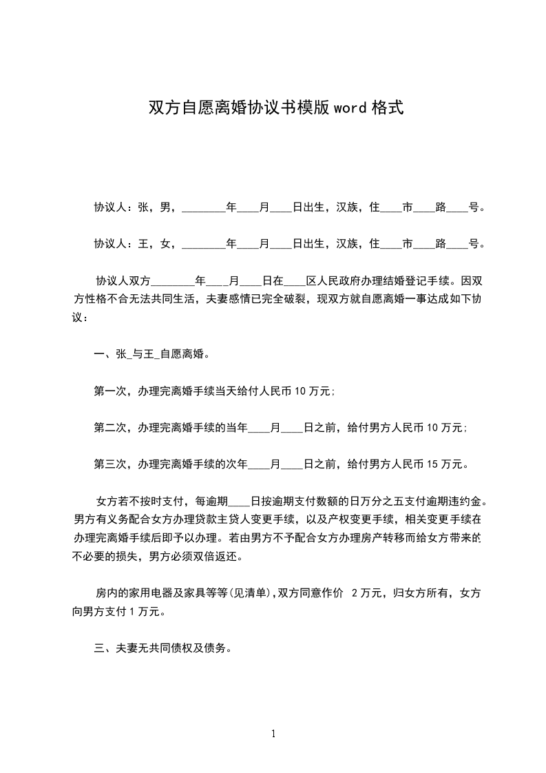 一、男女双方均自愿离婚;