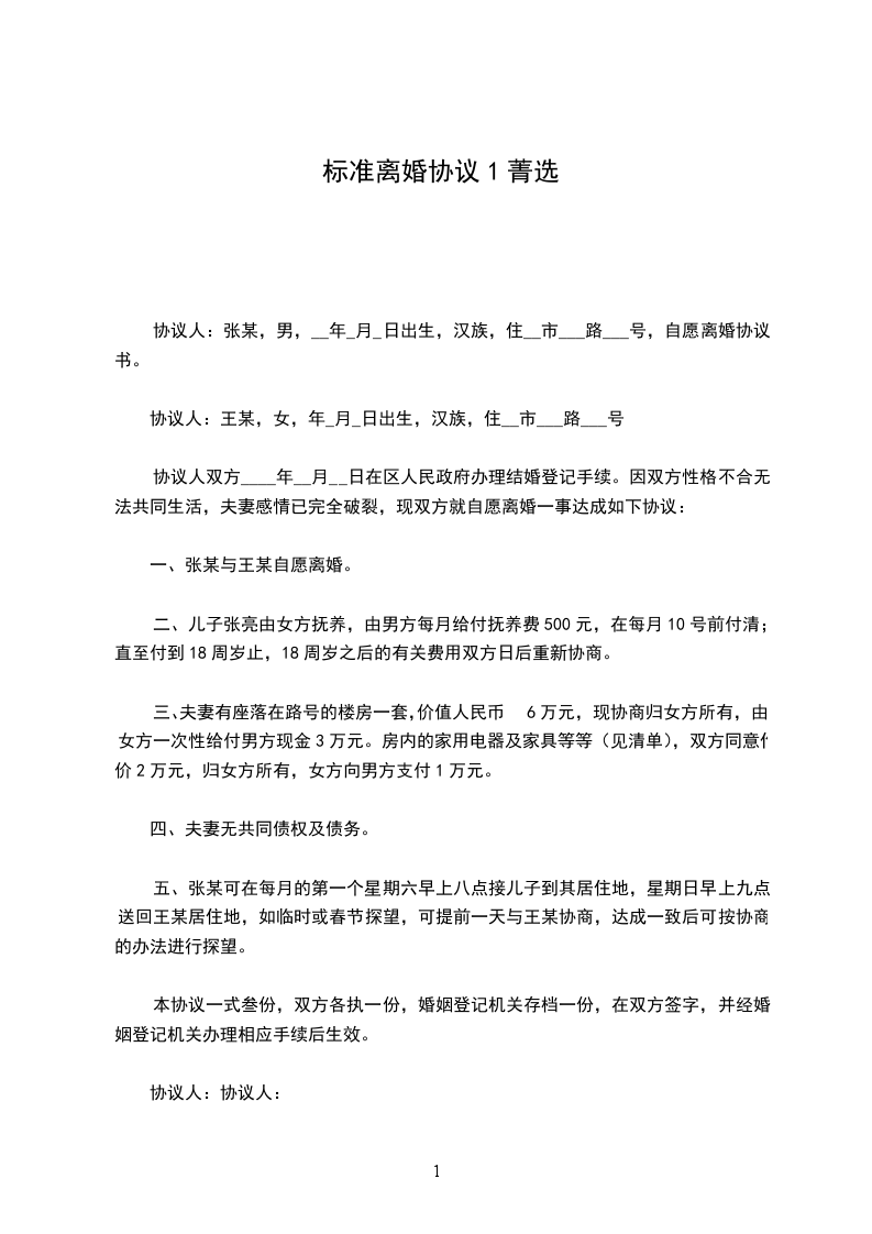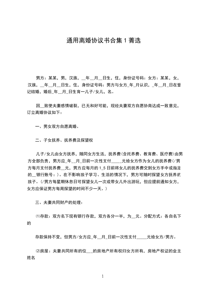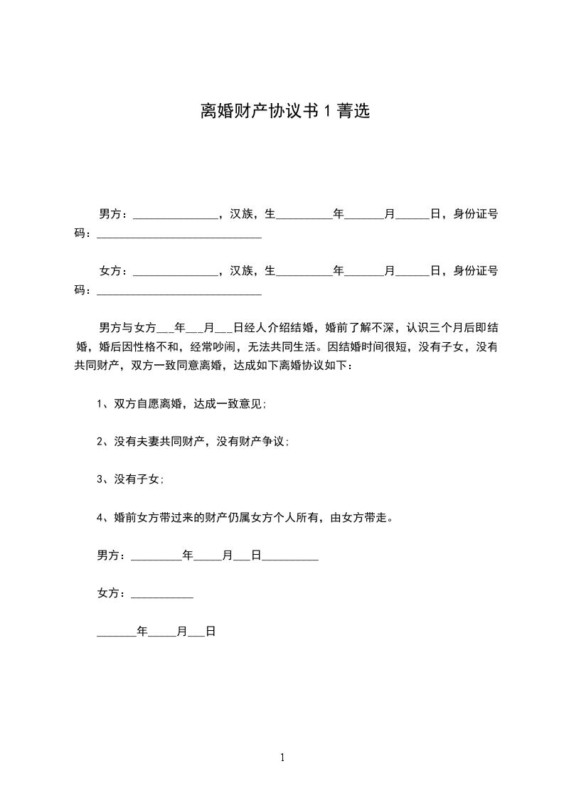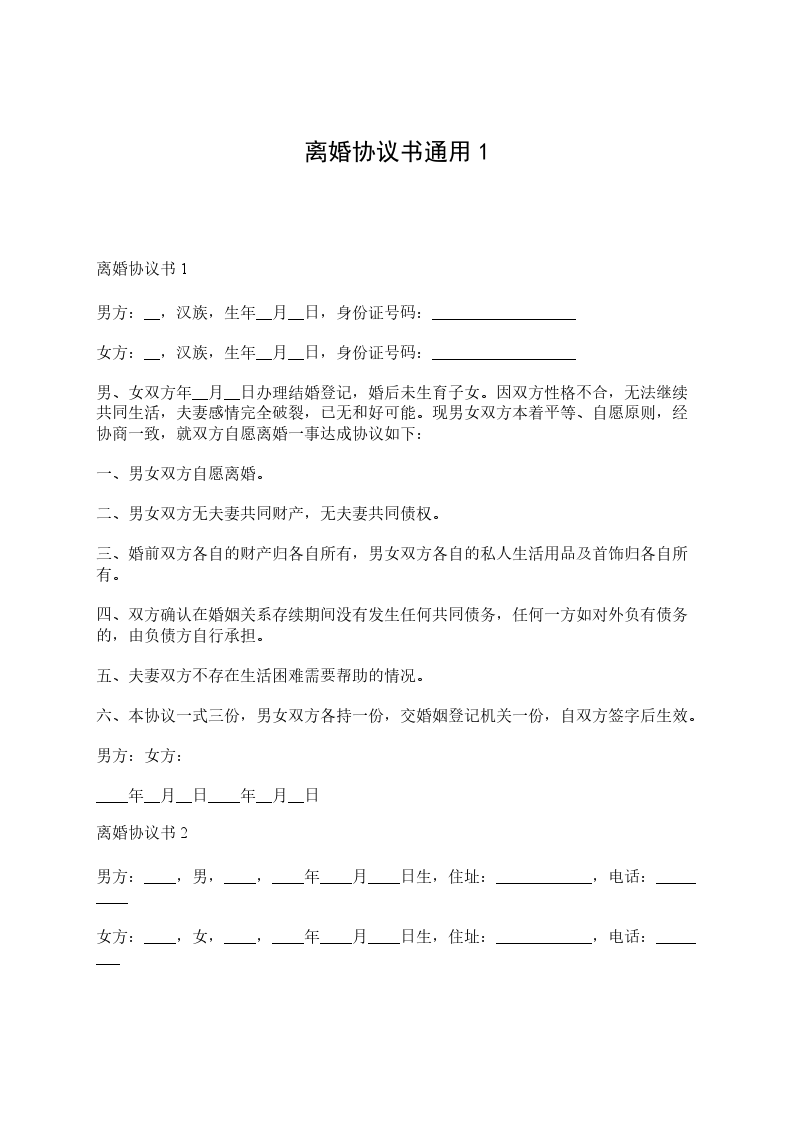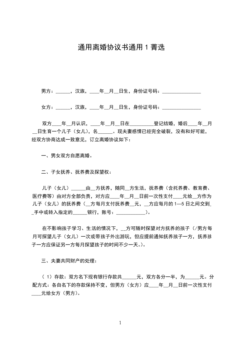 双方____年__月认识,____年__月__日在__________登记结婚,婚后____年__月__日生育一个儿子(女儿),名______。现夫妻感情已经完全破裂,没有和好可能,经双方协商达成一致意见,订立离婚协议如下: