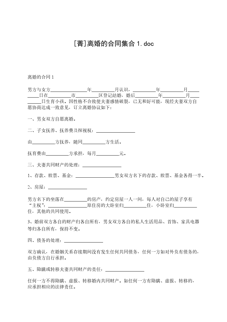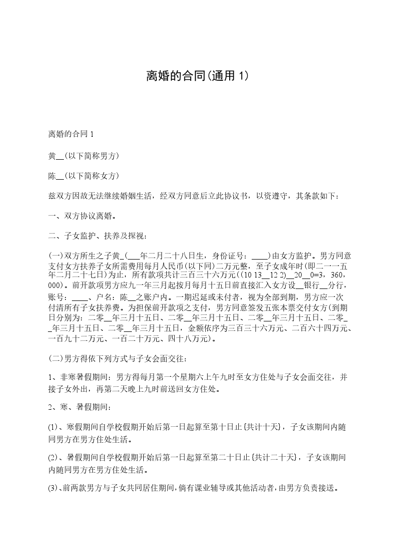 八、本协议一式三份,男、女双方各执一份,婚姻登记机关存档一份,自婚姻登记机颁发《离婚证》之日起生效。