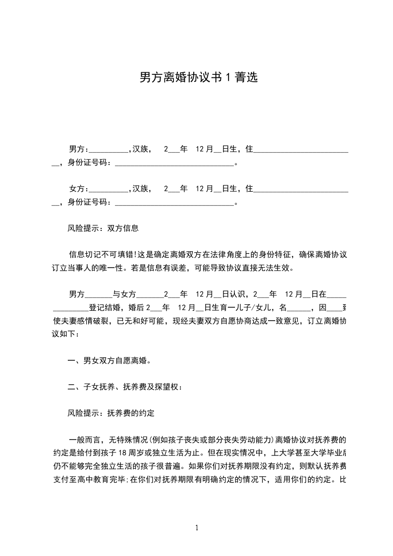 男方:______,汉族,____年__月__日生,身份证号码:________________