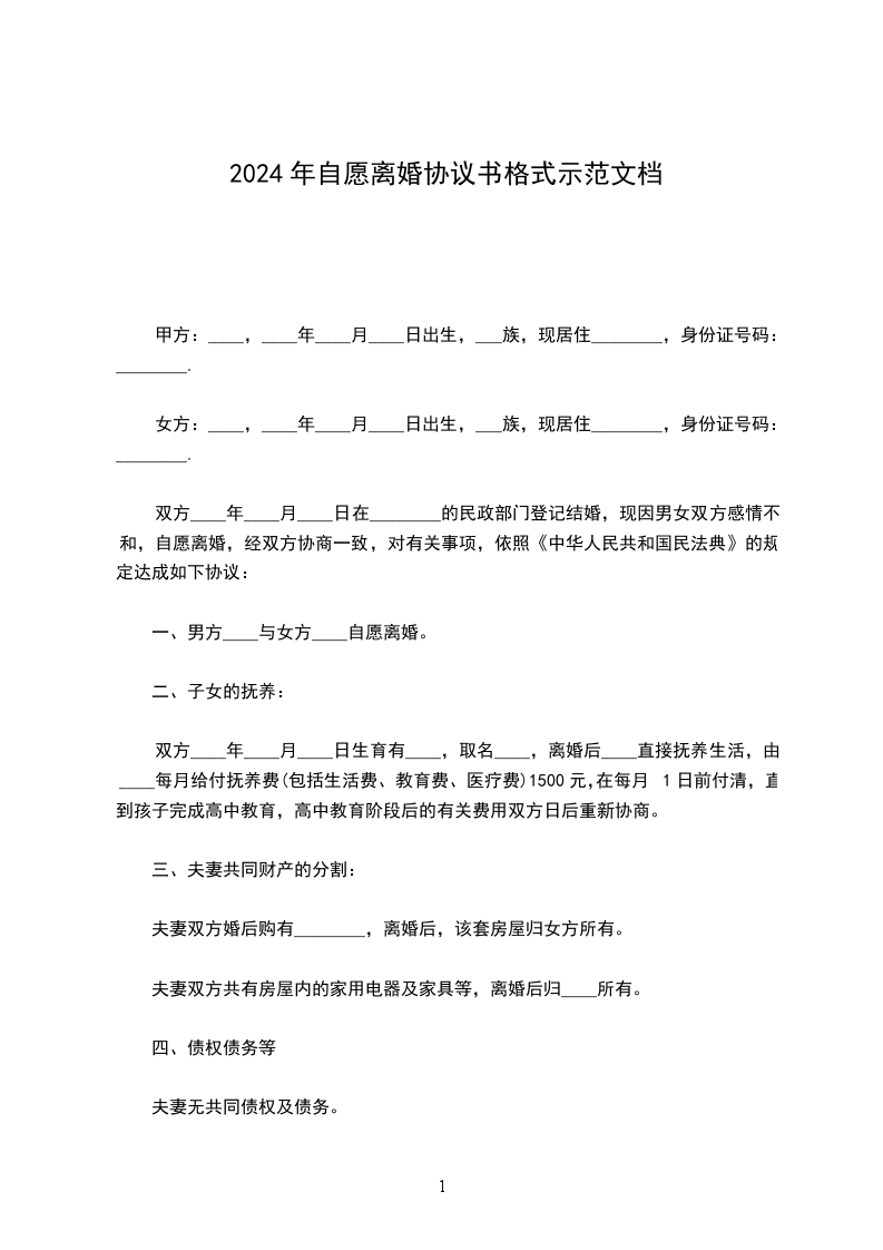 一、与自愿离婚。