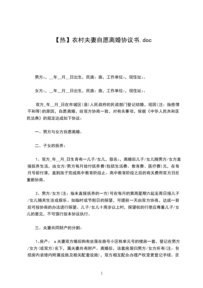 一、双方自愿离婚